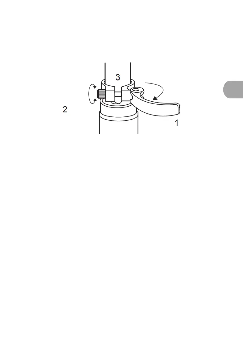 rápido (1) y gire manualmente la tuerca de ajuste (2) para soltar la