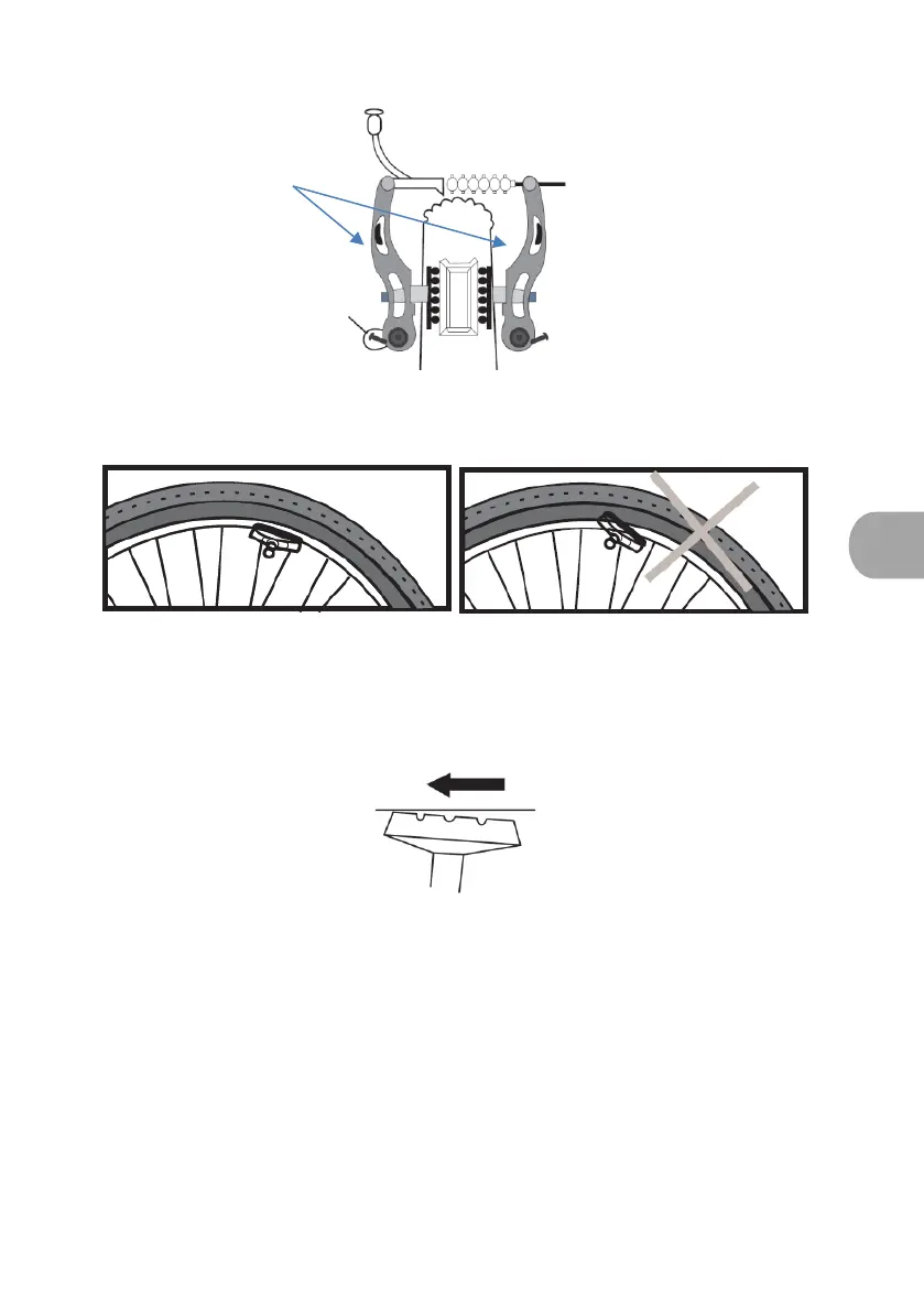 • Wyregulować odległość pomiędzy płytkami a felgą w zakresie