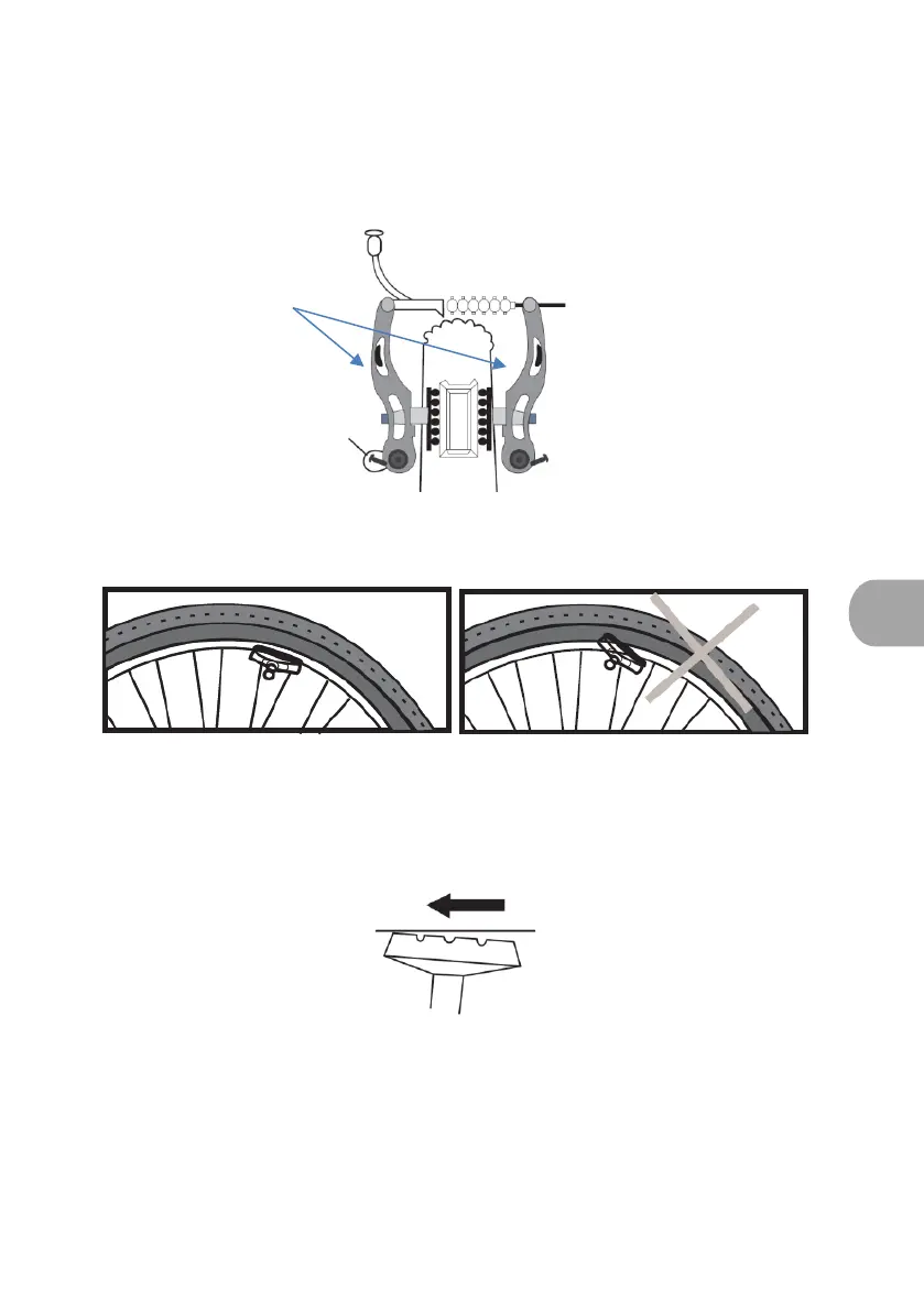 • Ajuste a distância entre os calços e a jante, de 1 a 3 mm, para