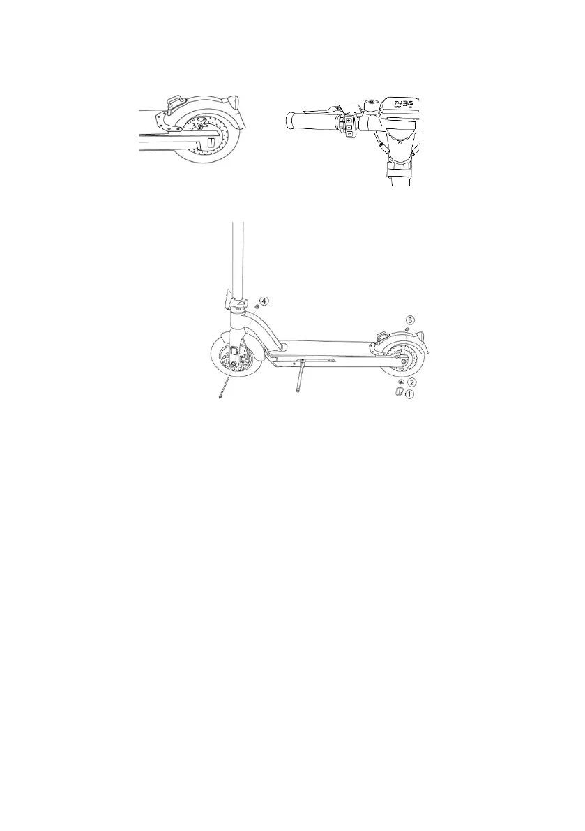 • Allentare i dadi motore ③ : uno su ciascun lato della ruota.