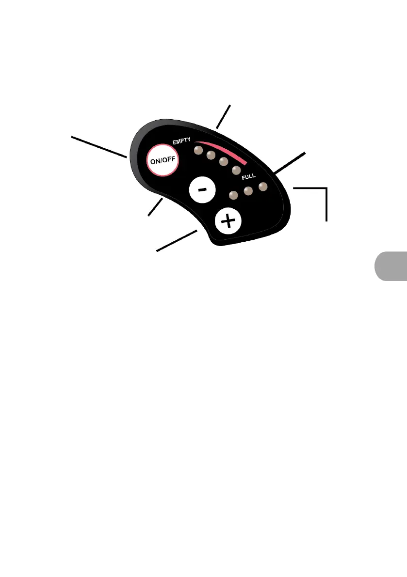 do visor. As luzes LED vermelhas de indicação da carga e do nível de