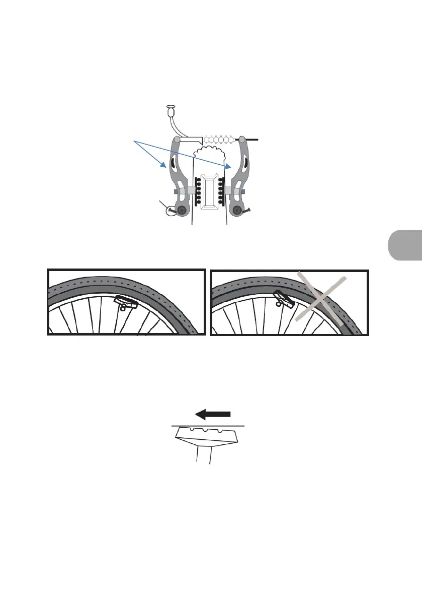 • Wyregulować odległość pomiędzy płytkami a felgą w zakresie
