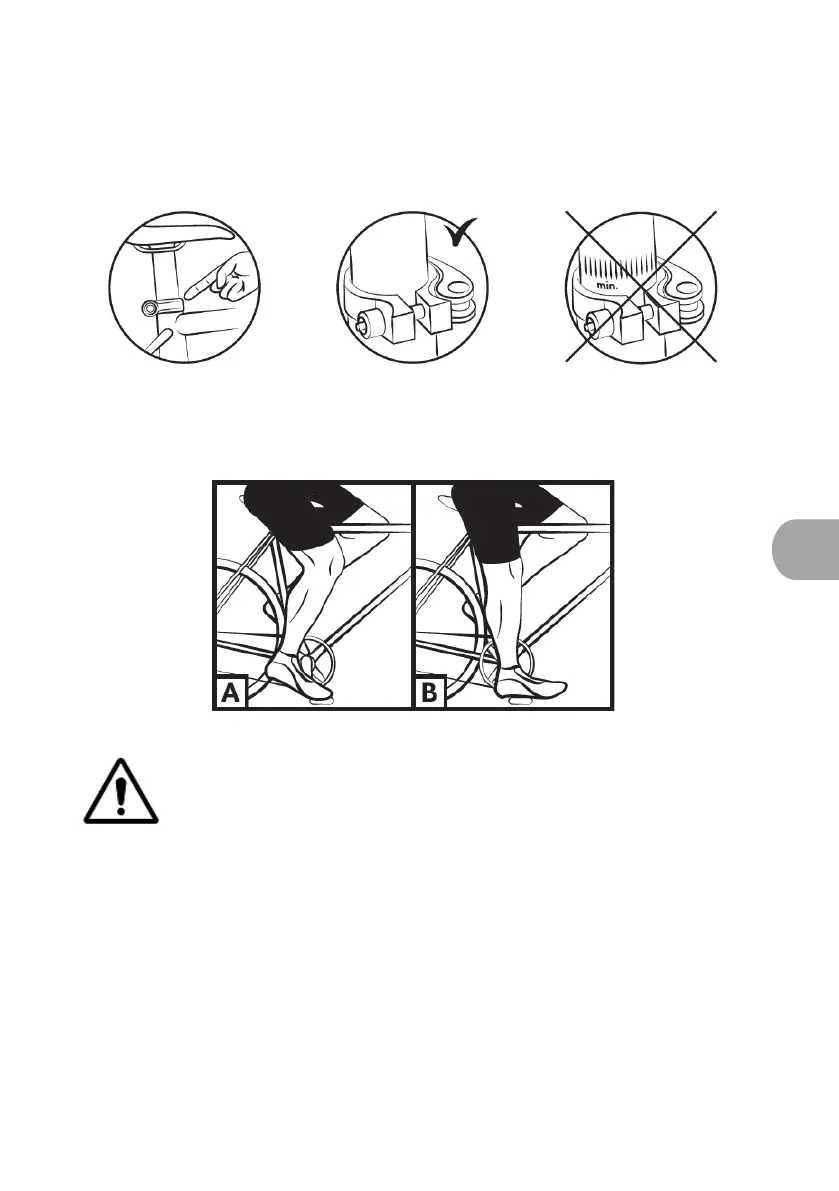 pernas esticadas, com o pé no pedal (fig. B). Ao pedalar, o
