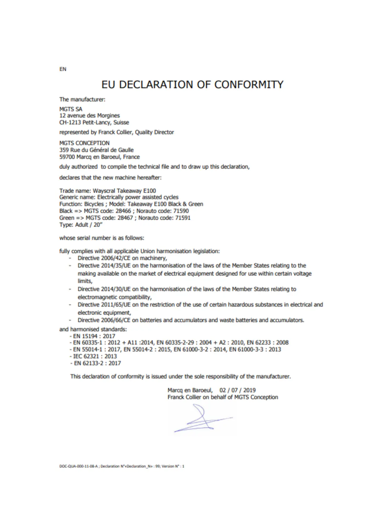 wayscral TAKEAWAY E100