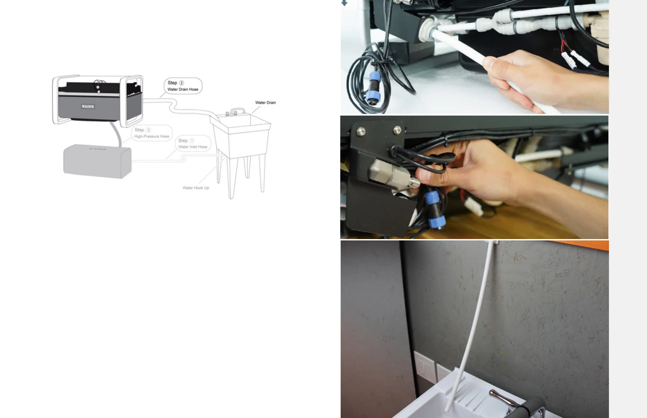 WAZER outputs a significant amount of water during cutting. For this reason, the Water Drain Hose
