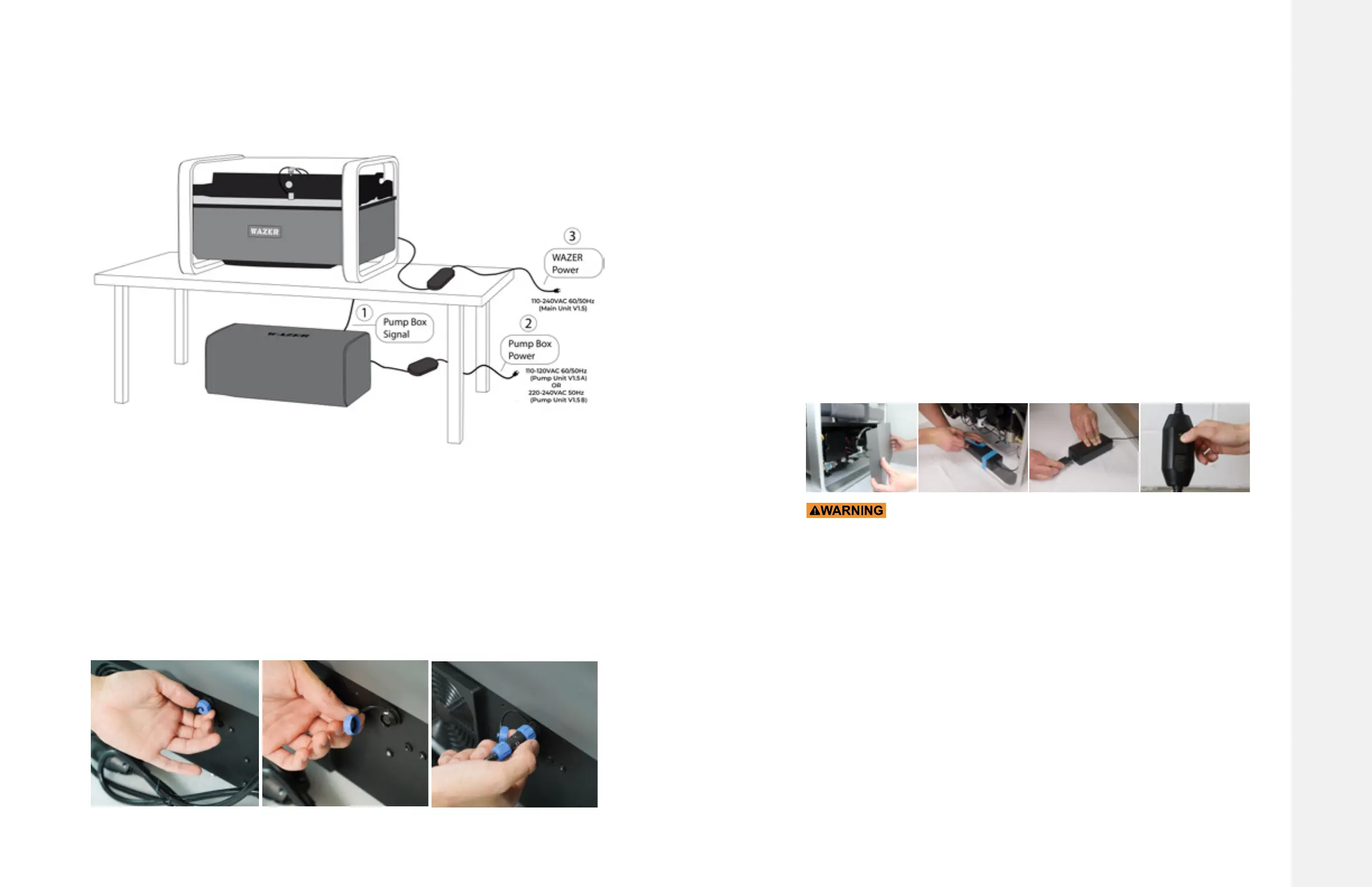 setup. If you are connecting your 110 VAC 60hz WAZER (designated as V1.5A), make sure to
