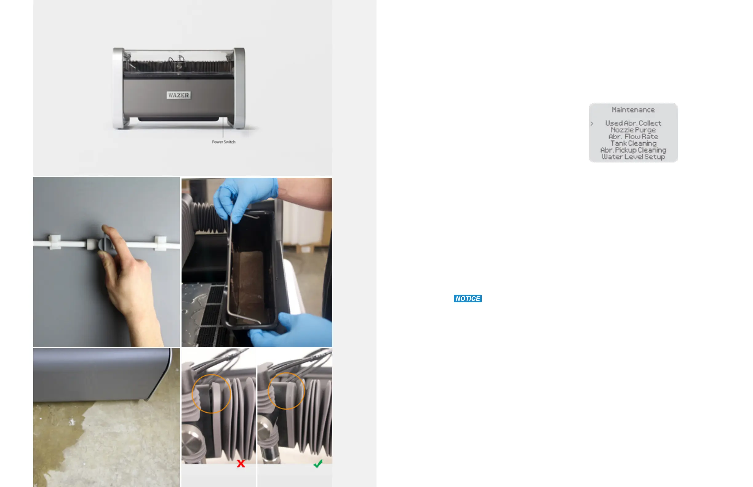 If you notice that WAZER is not collecting Used Abrasive as quickly as it should,