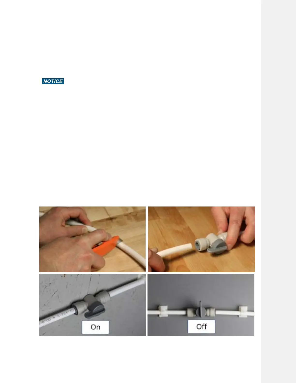 Once you have completed the three hose connections, install of the Water Filter and On/Off