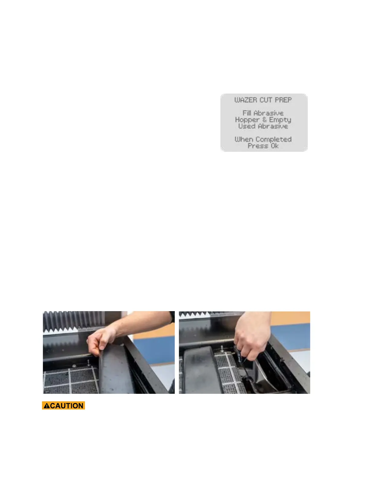 collected and routed into two Used Abrasive Buckets located at the front of WAZER Pro. You must empty both