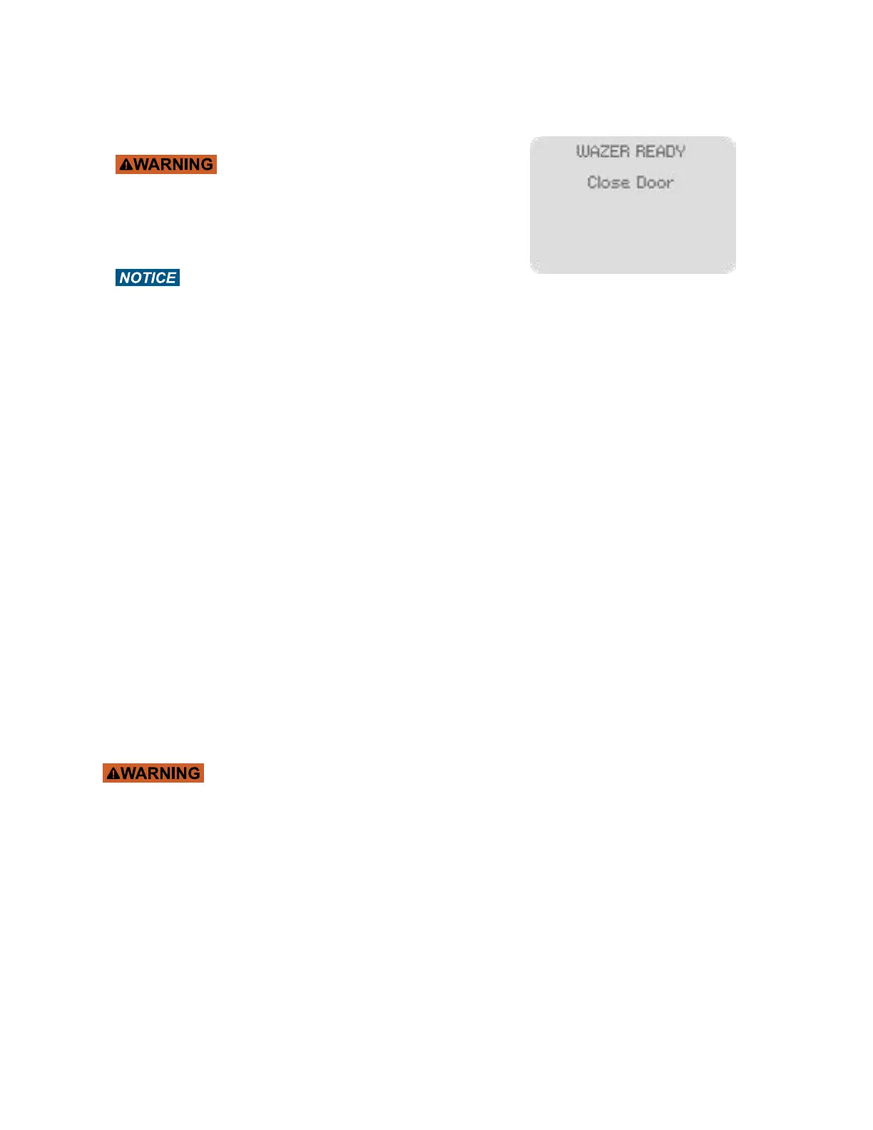 Never open the Door while WAZER Pro is running. Never leave WAZER Pro unattended, either