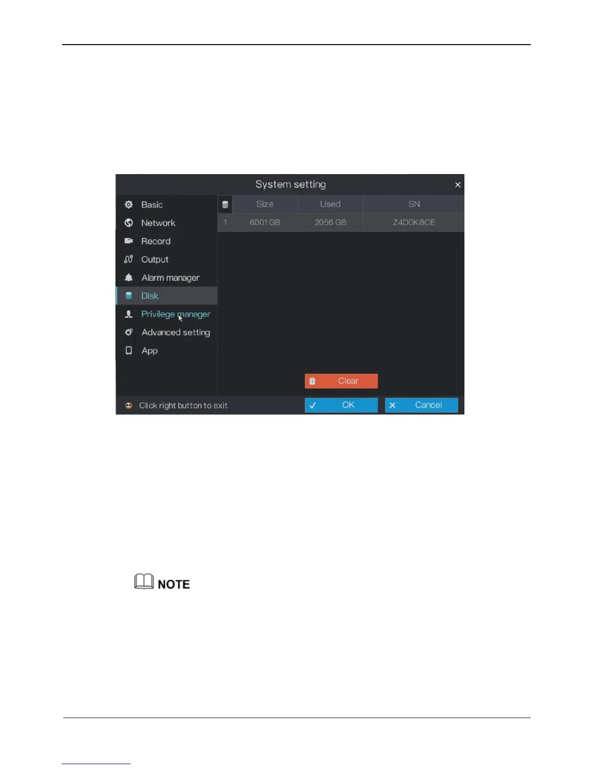 Step 1 On the System setting screen, choose Disk to access the disk management screen, as