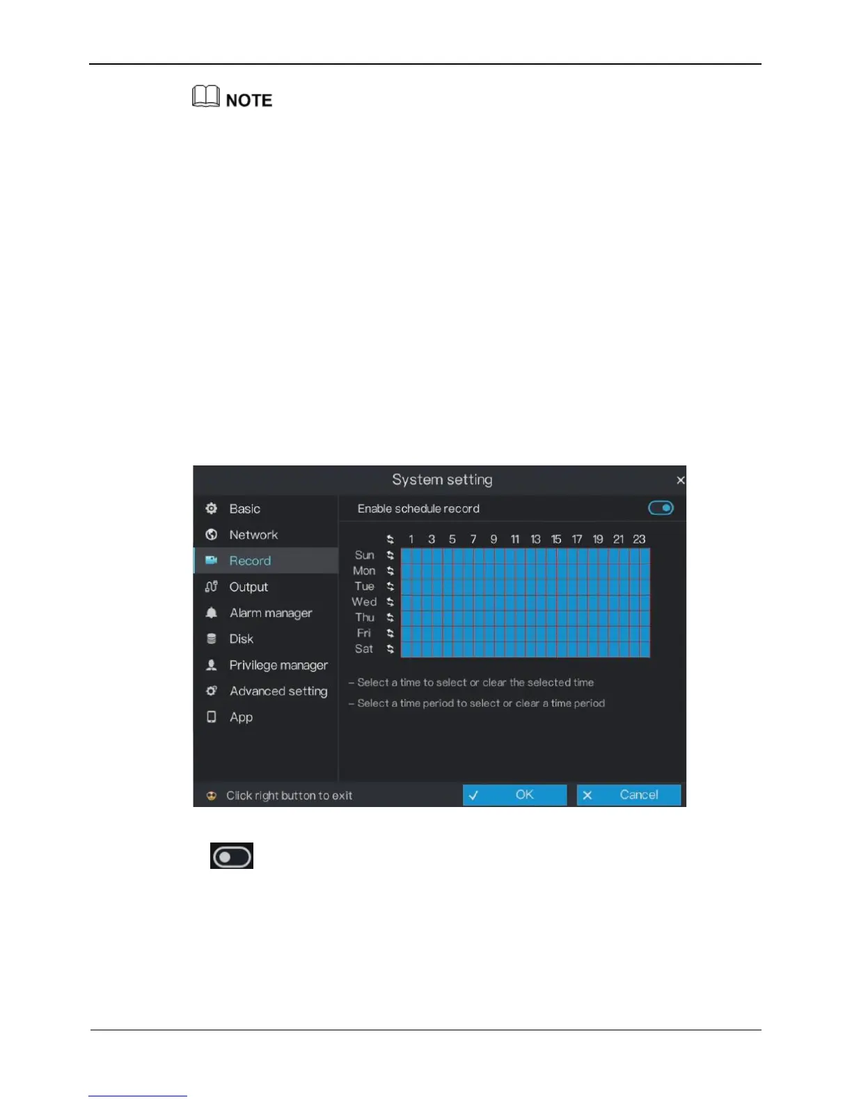 Step 4 Click OK to save record settings or click Cancel to cancel settings.
