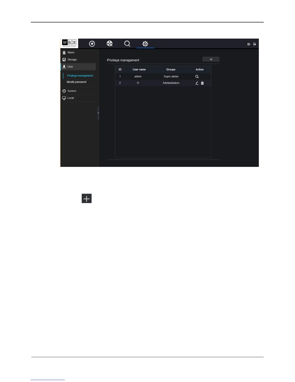 1. Click in privilege management interface to access the add user interface, as
