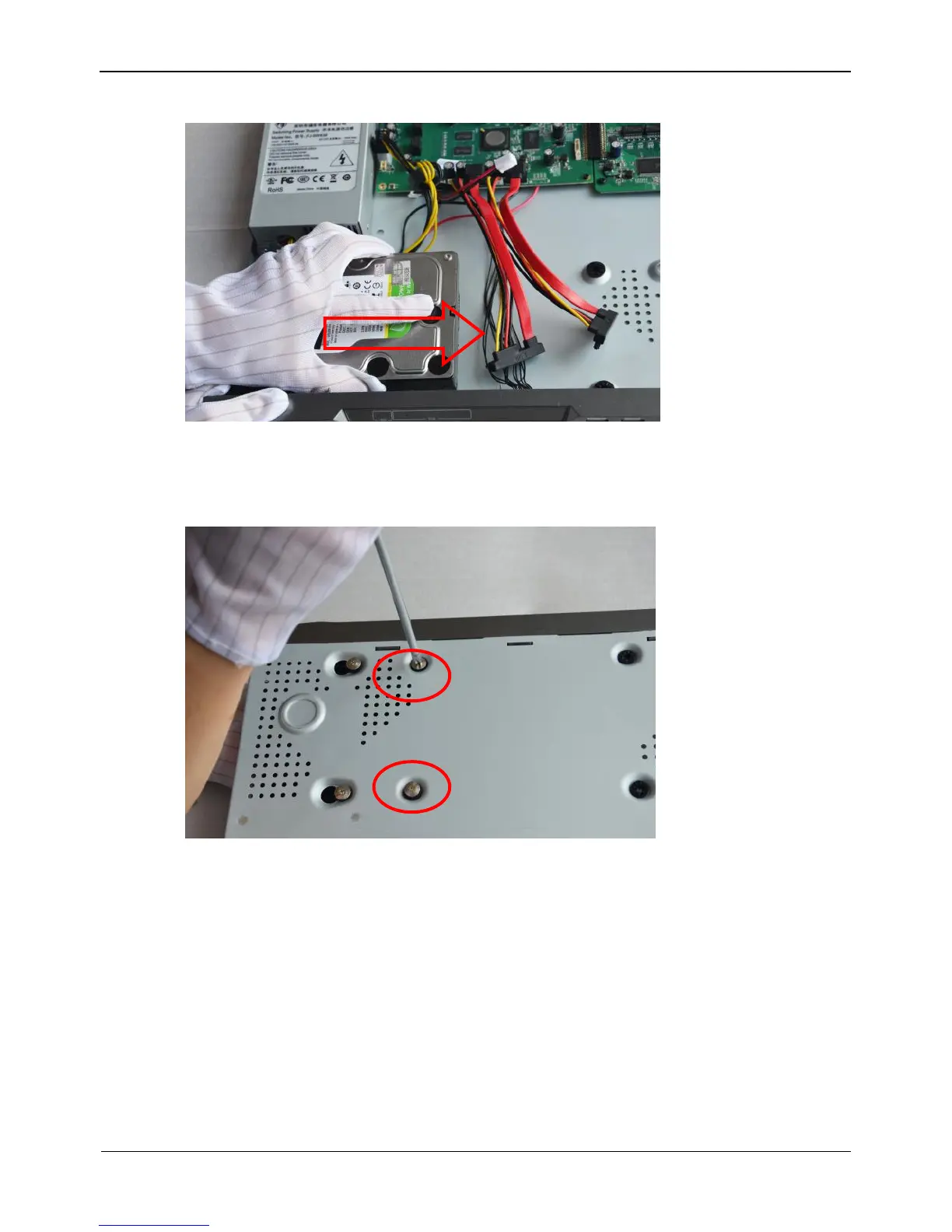 Step 4 Turn the device over, and fasten two hard disk fixing screws, as shown in Figure 2-4.