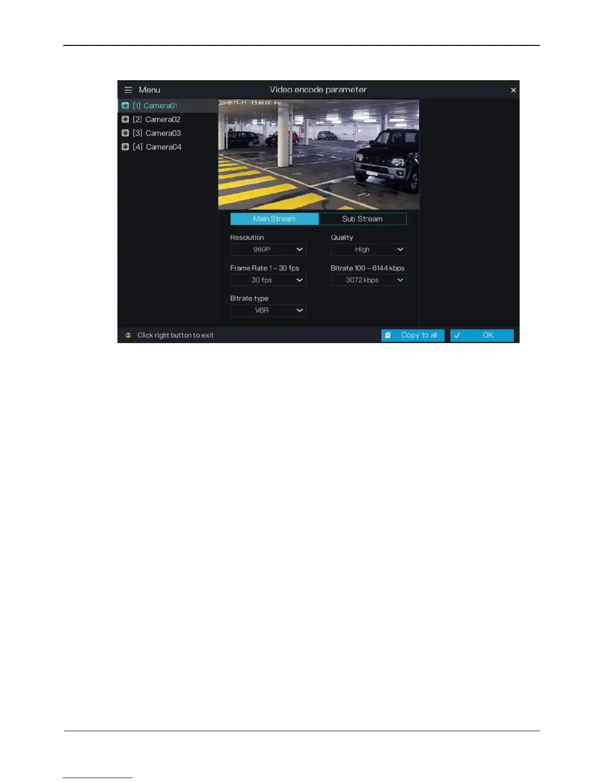 Step 4 Click OK to save encode parameter settings or click Copy to all , then click OK to