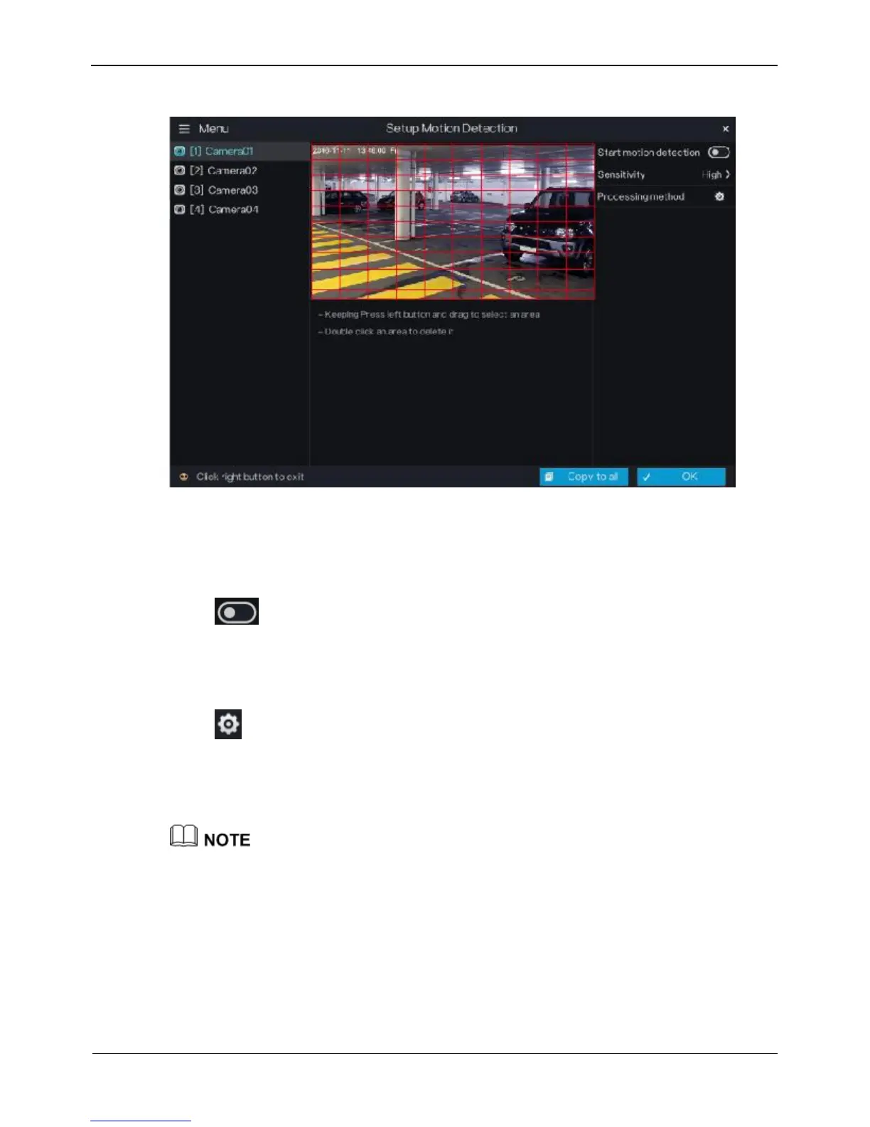 Step 6 Click OK to save motion detection settings or click Copy to all, then click OK to