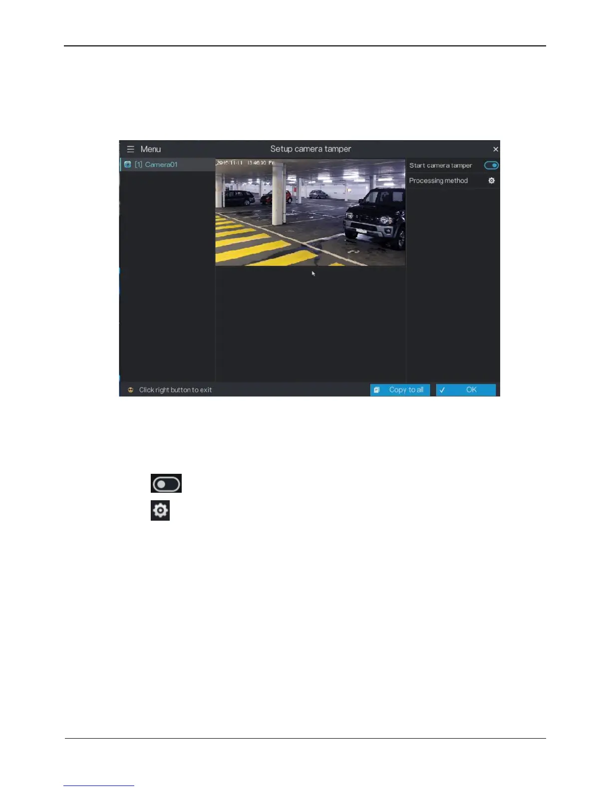 Step 4 Click OK to save camera tamper settings or click Copy to all, then click OK to apply