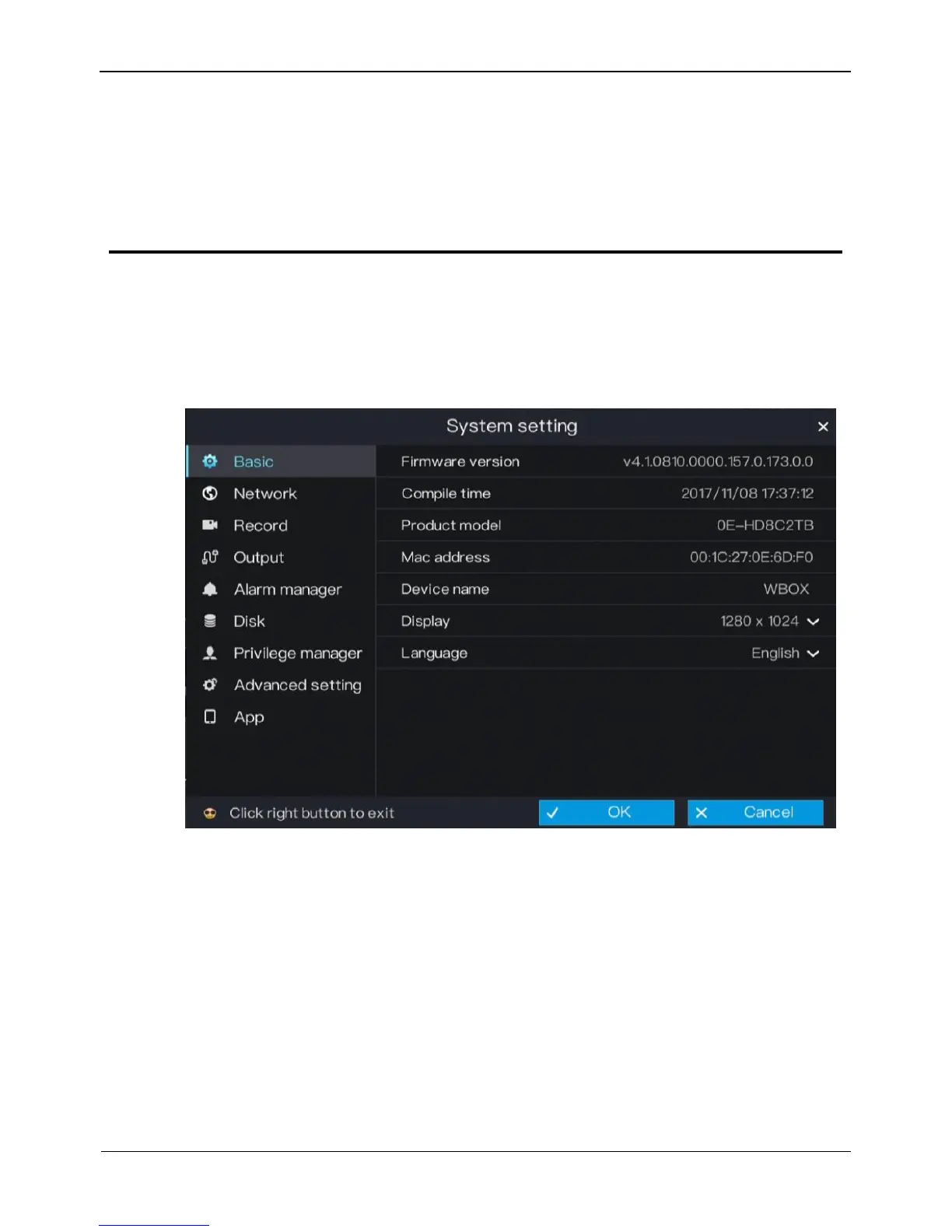 The system setting allows you to set basic information, network, record, output, alarms