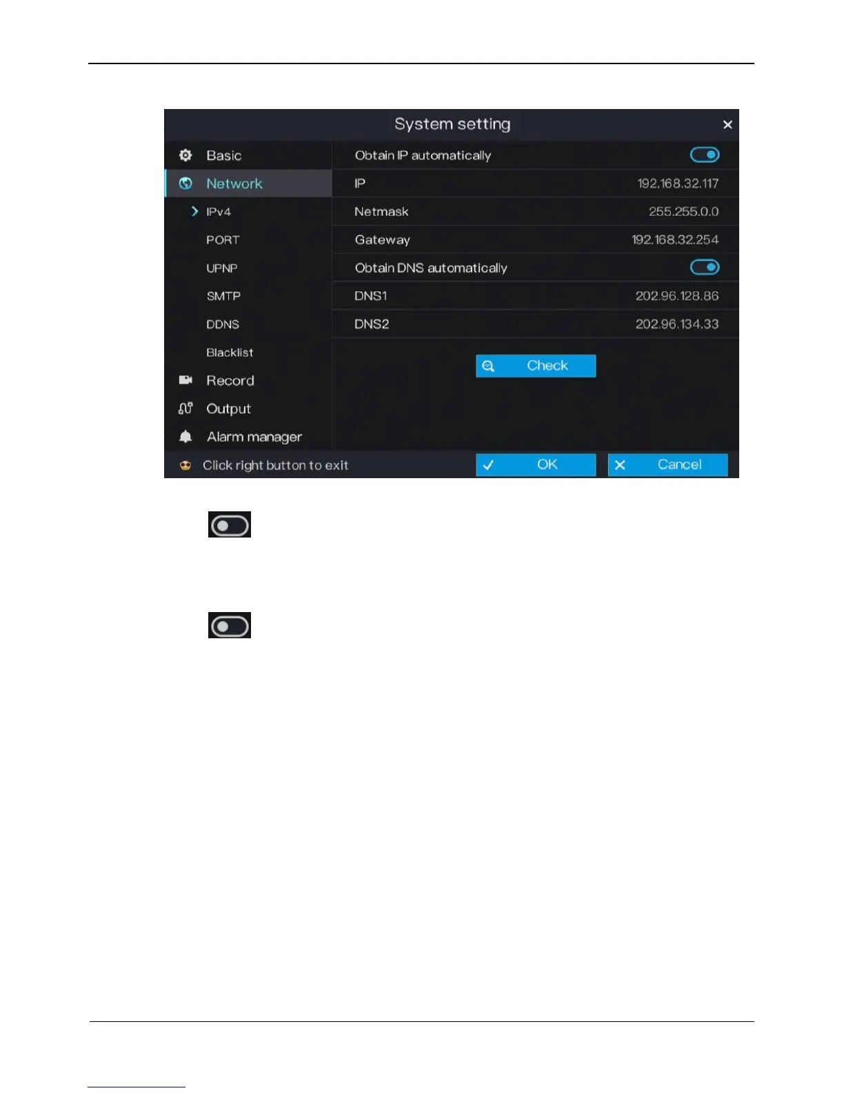 Step 2 Click next to Obtain IP automatically to enable or disable the function of