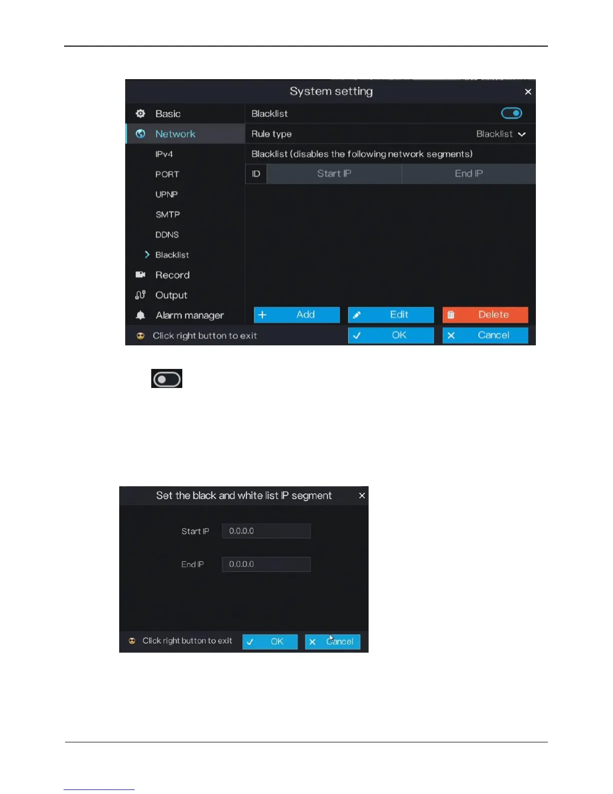3. Click OK. The system saves the settings. And the black and white list IP segment