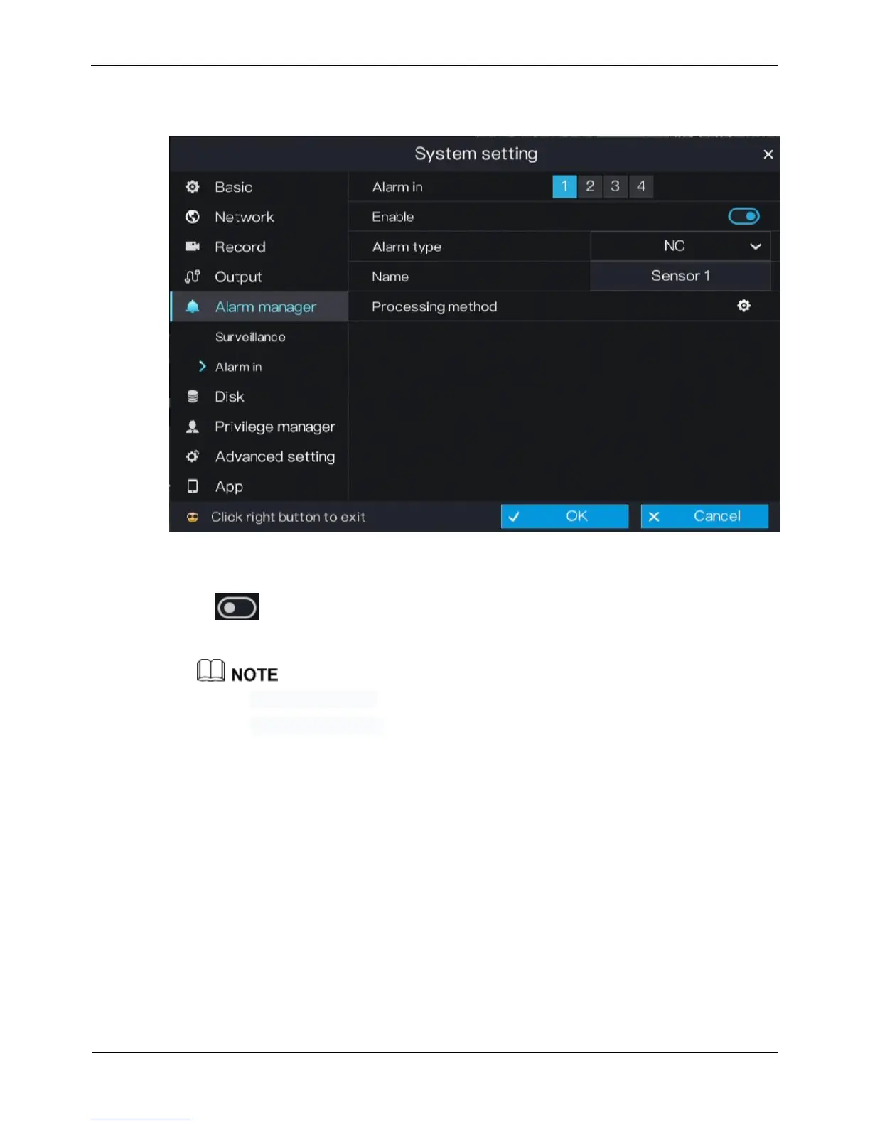 Step 7 Click OK to save alarm in settings or click Cancel to cancel settings.