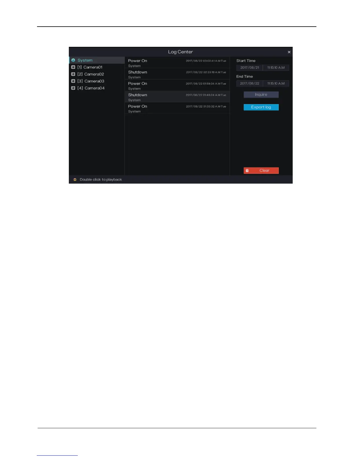 Step 6 Click Export log to export logs to USB storage..