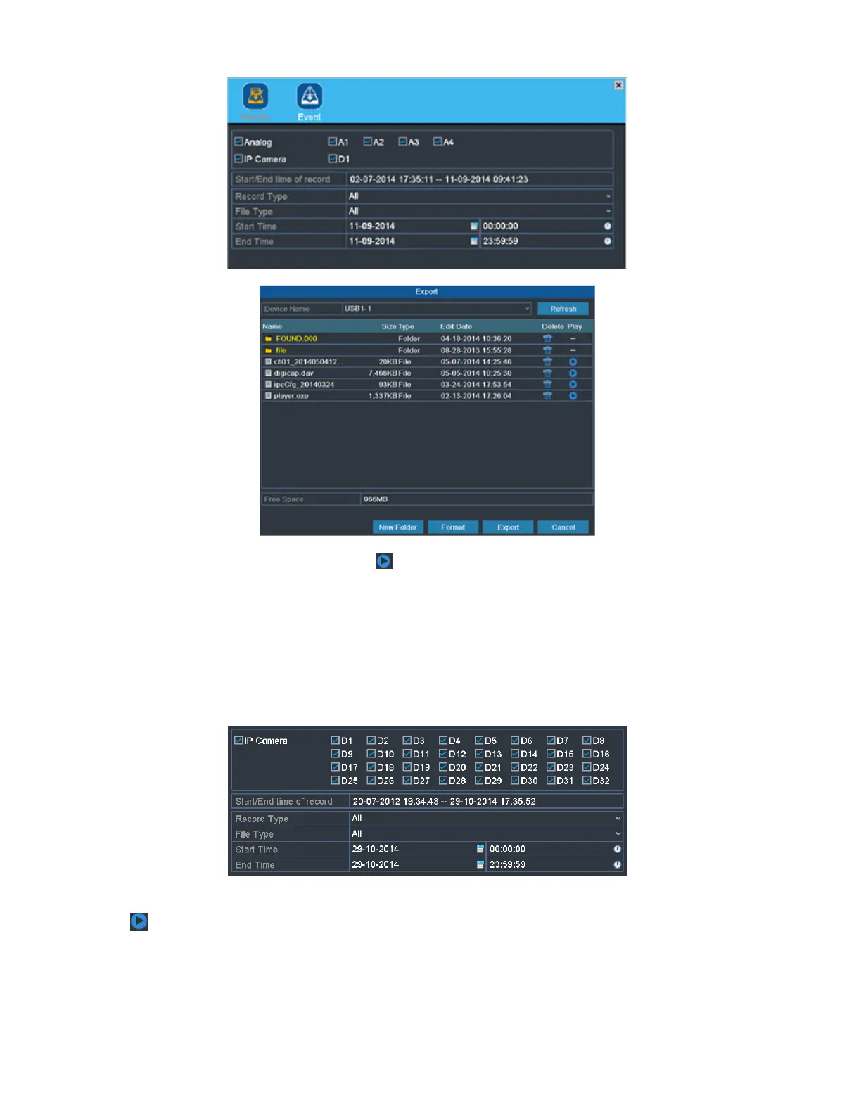 Velg opptaksfilen i vinduet Eksport, og klikk på -knappen for å kontrollere den.