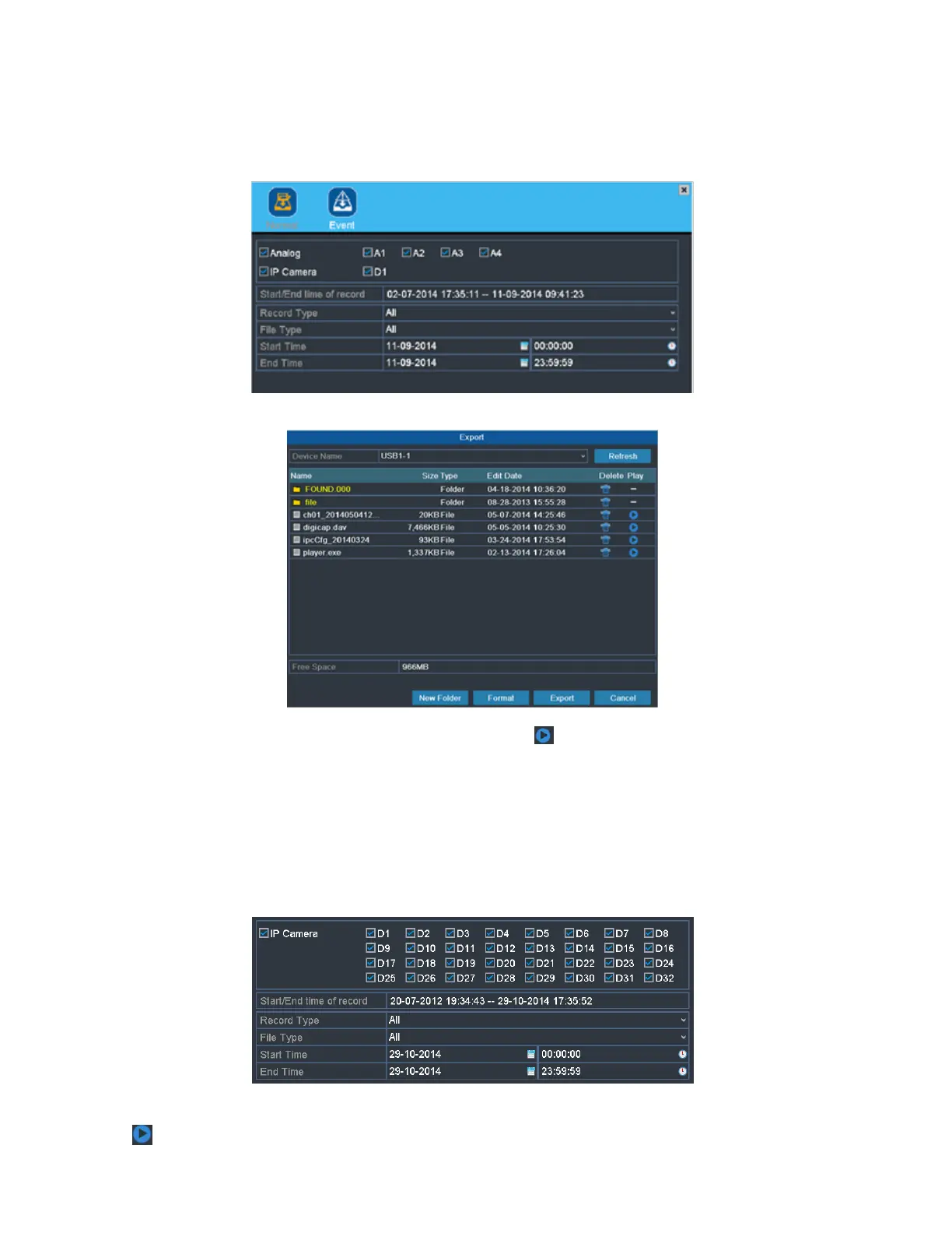 Aby wyeksportować nagrane pliki: