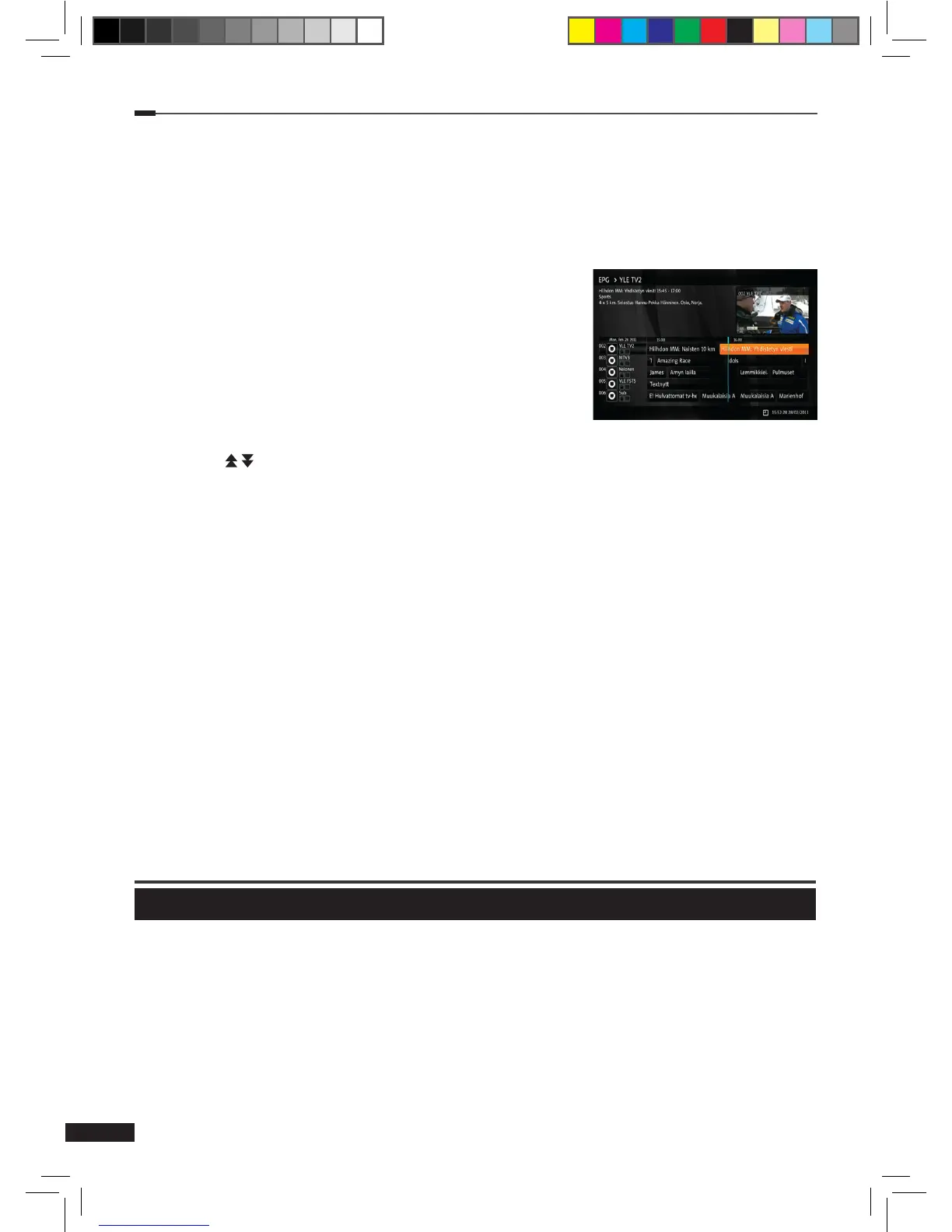 ) buttons: Move up/down the channel list (or program list in one channel mode)