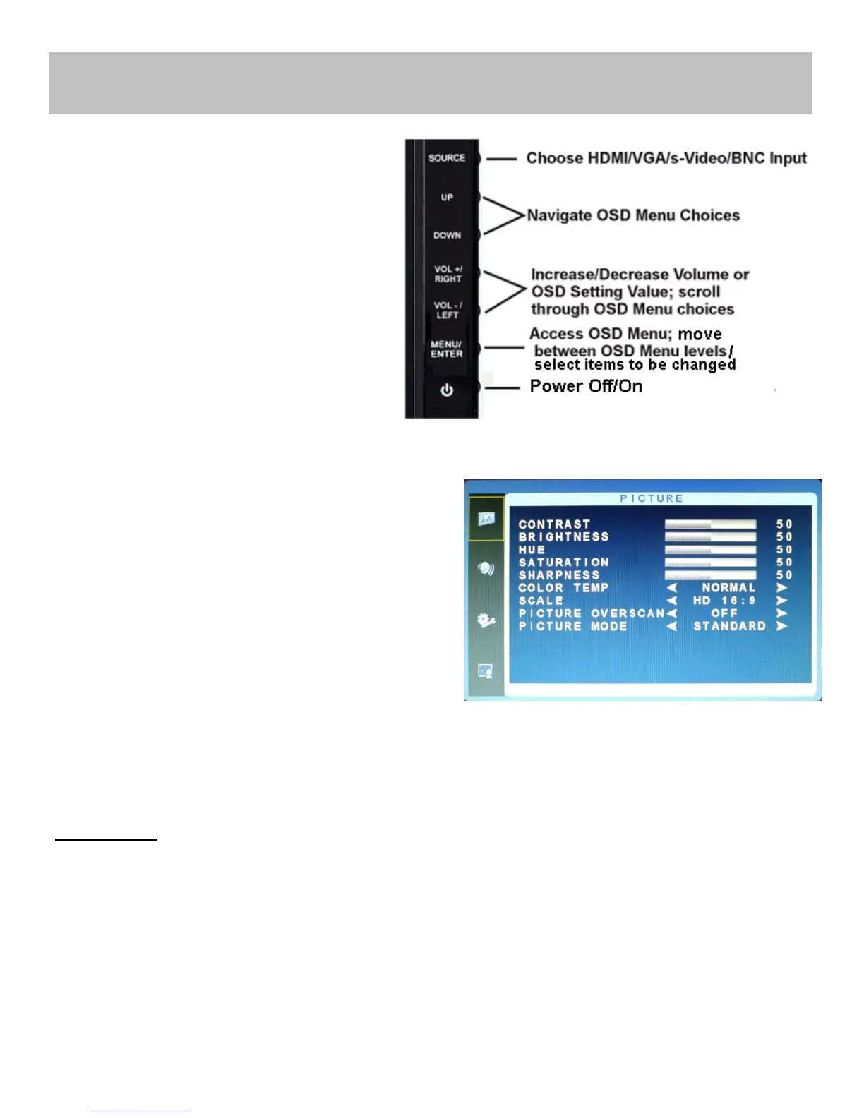A. PICTURE Menu (CVBS/AV, s-Video & HDMI)
