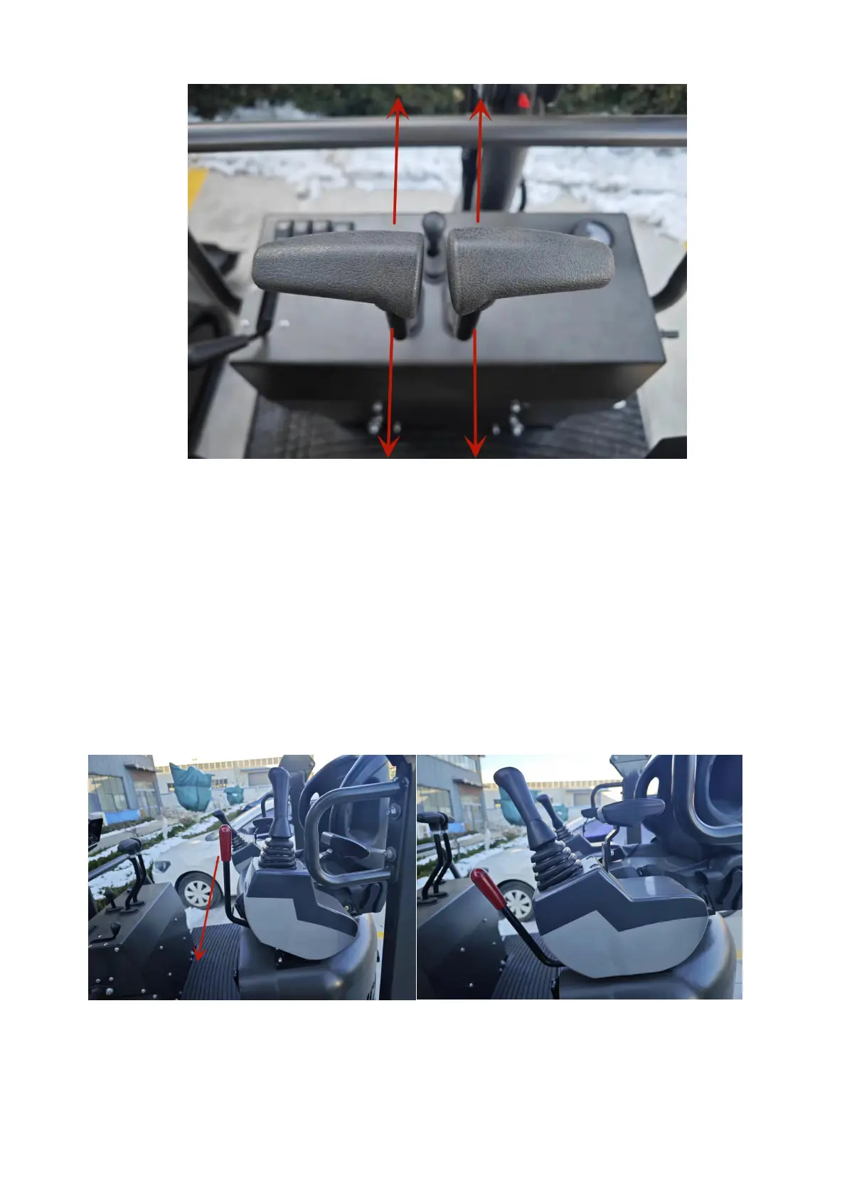 The excavator slewing and the work equipment are respectively controlled with two handles, with positions