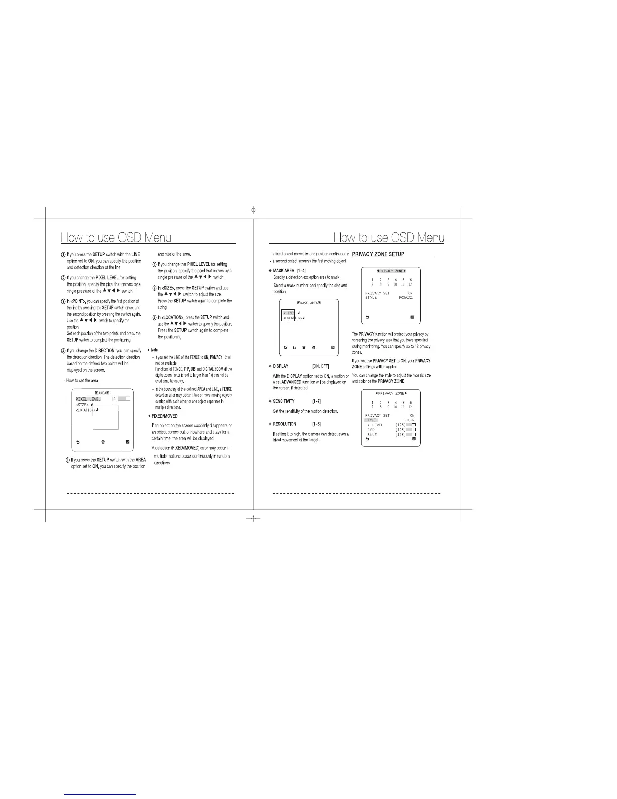 WDR Series - OSD Menu: Privacy and Masking; Fence Line and Area Setup; Privacy Zone and Mask Area Configuration