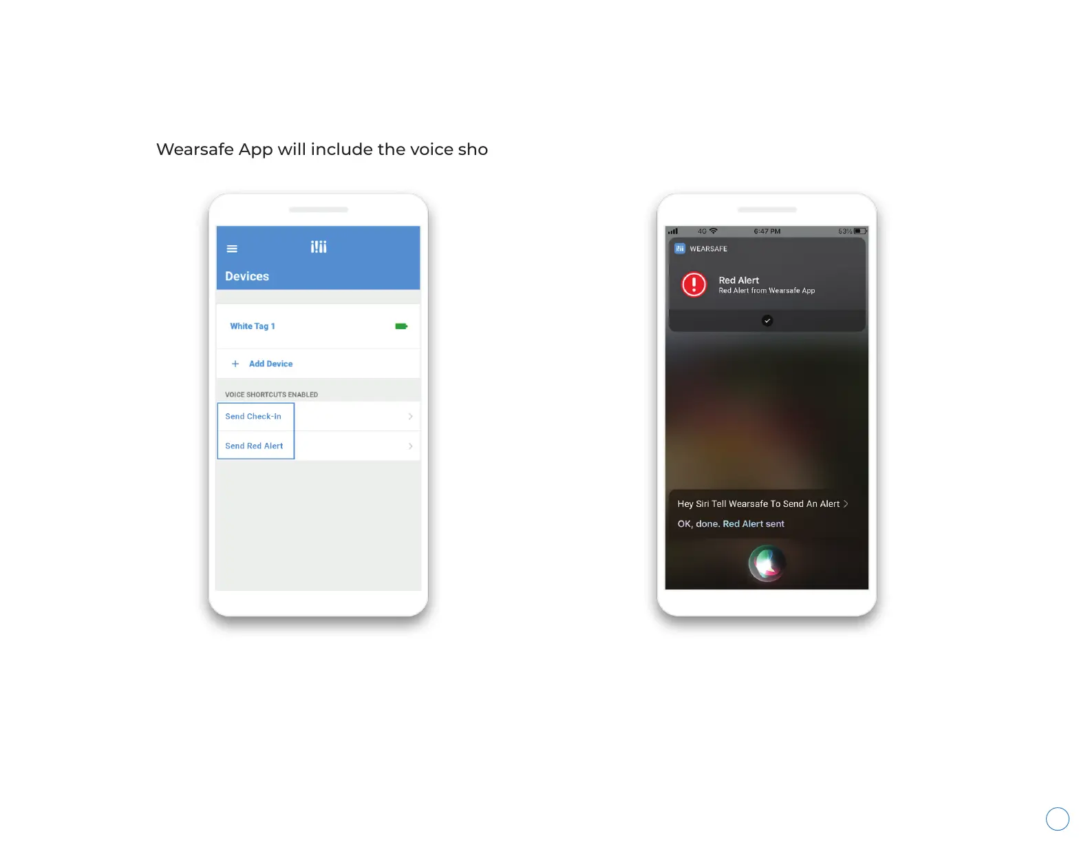 The Wearsafe App integrates with Siri to allow you to send Check-ins and Red Alerts with voice commands. If you have