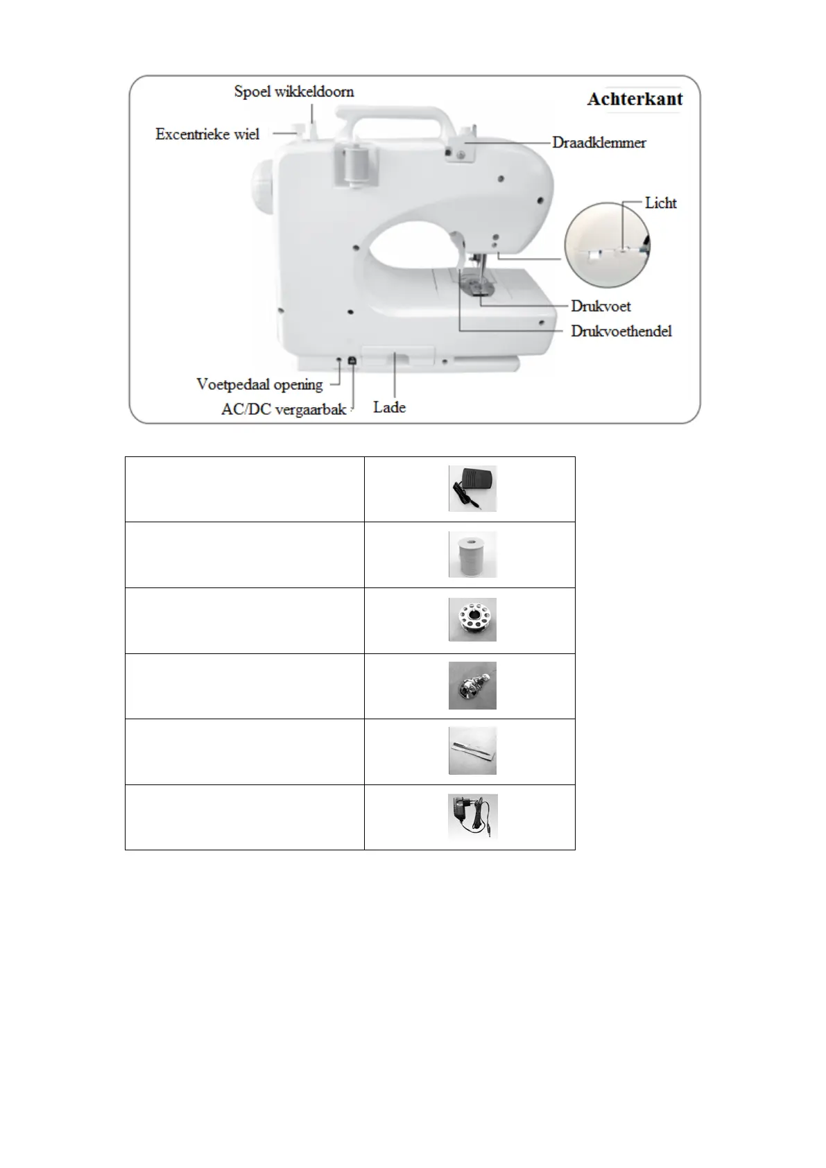 DE NAAIMACHINE AAN HET STROOMNET BEVESTIGEN