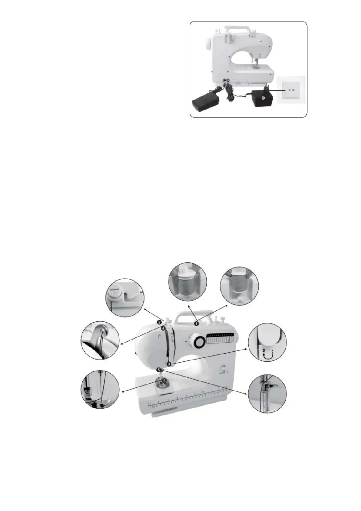 Waarschuwing: Bij het inrijgen van de naaimachine die nu ervoor te zorgen dat de
