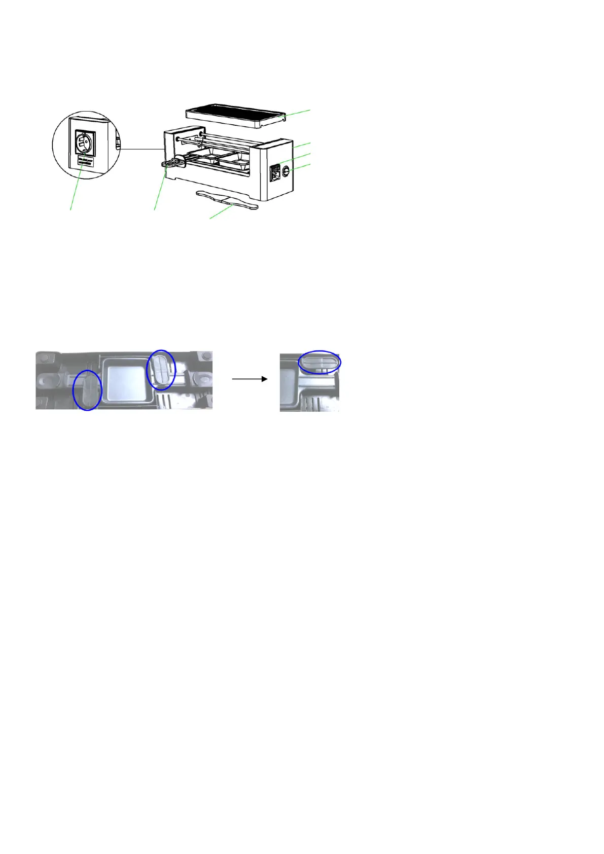 Las dos racletas que vienen con el aparato están fijas en el fondo de la base. Destrabe ambas