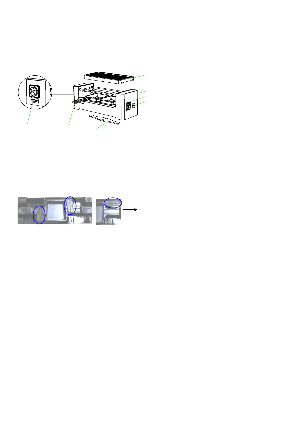 I due vassoi raclette forniti sono fissati sul fondo della base. Sbloccarli e rimuoverli prima di utilizzare