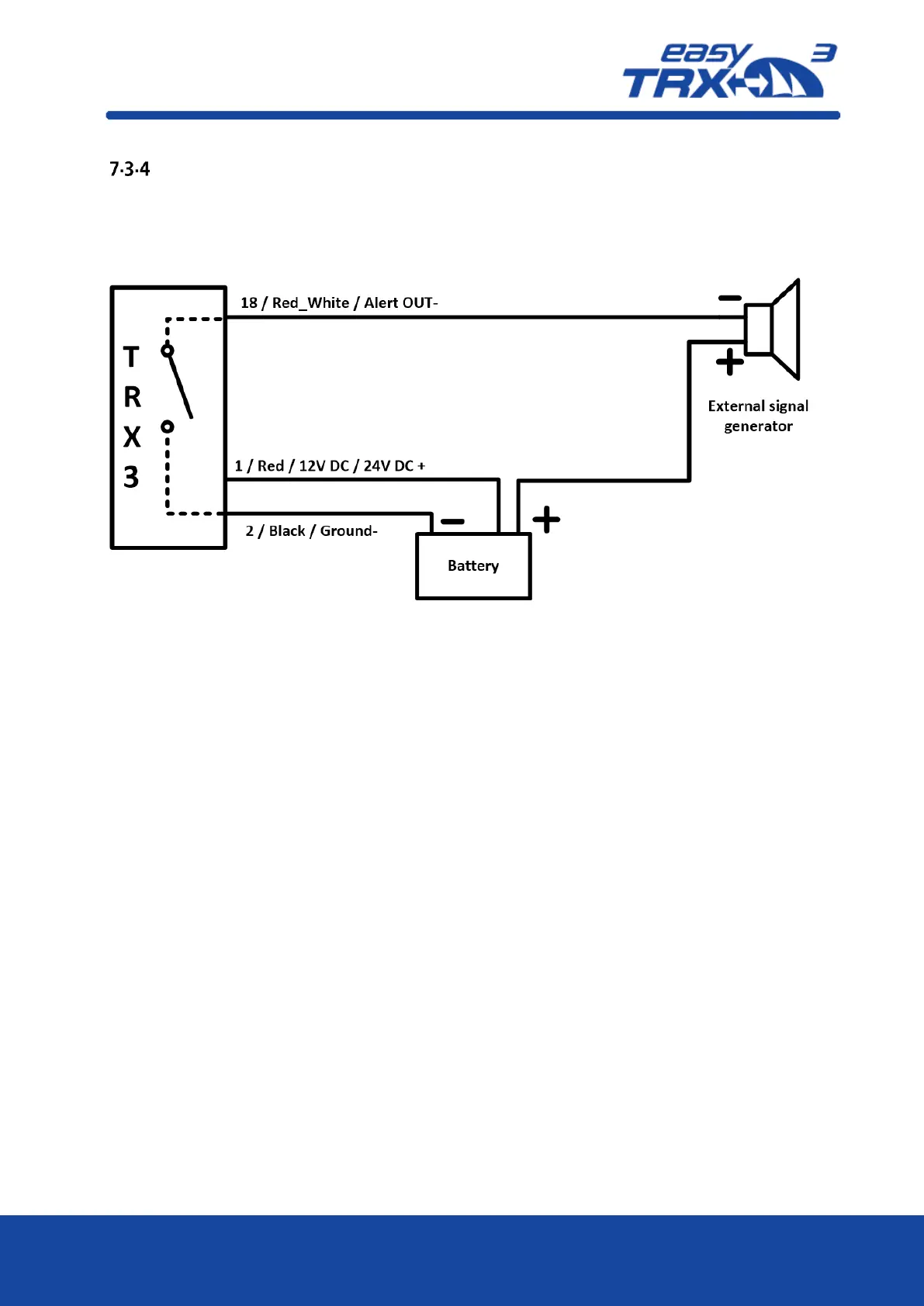 easyTRX3 via cable “2 / Black / Ground-“ and “1 / Red / 12V DC / 24V DC +” you just have to