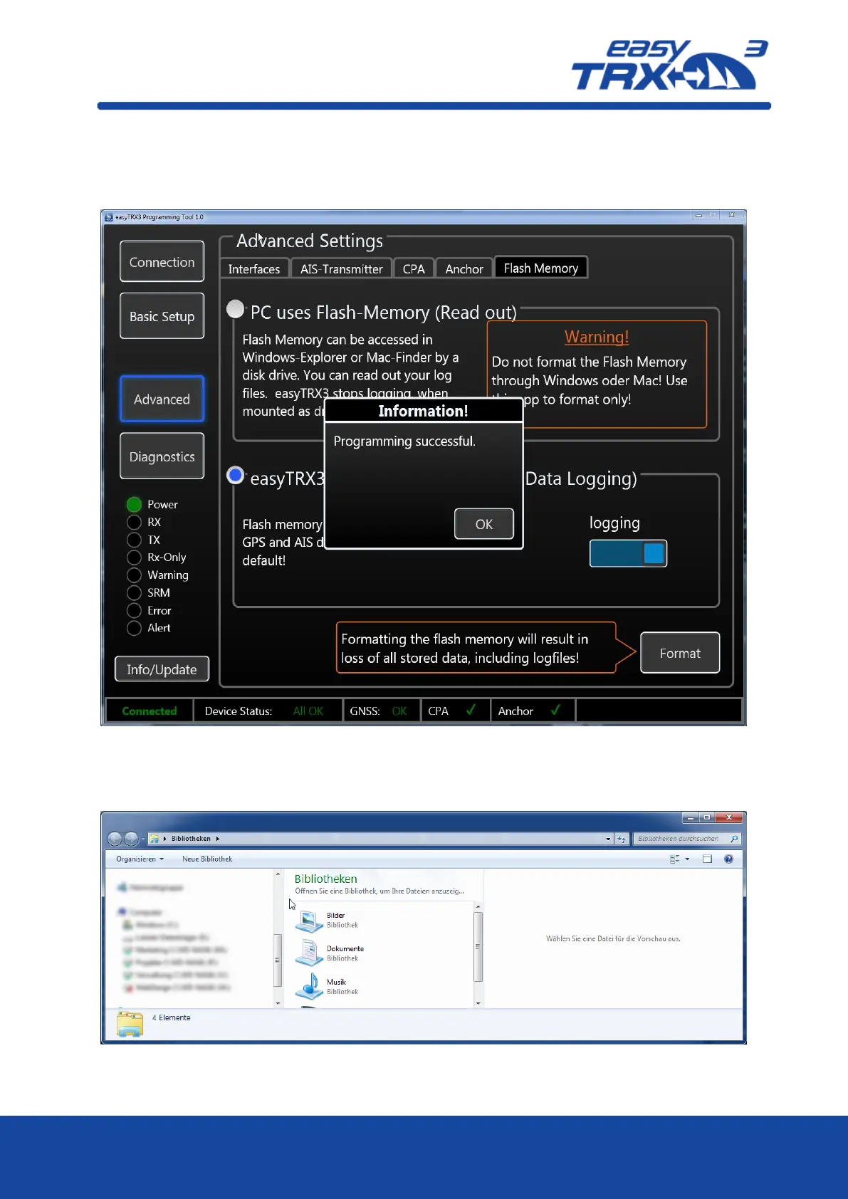 In „Windows-Explorer“ or „iOS-Finder“ you can see that the easyTRX3 is no longer mounted as