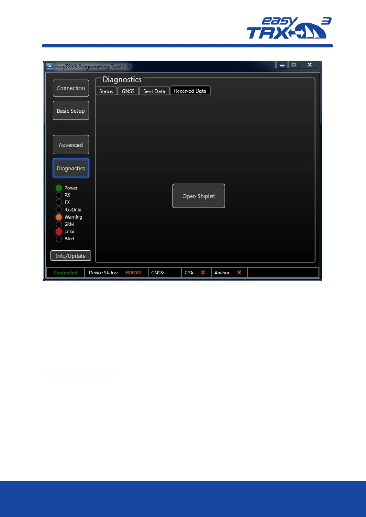 You can also update the firmware or reset the easyTRX3 back to manufacturer settings, if there