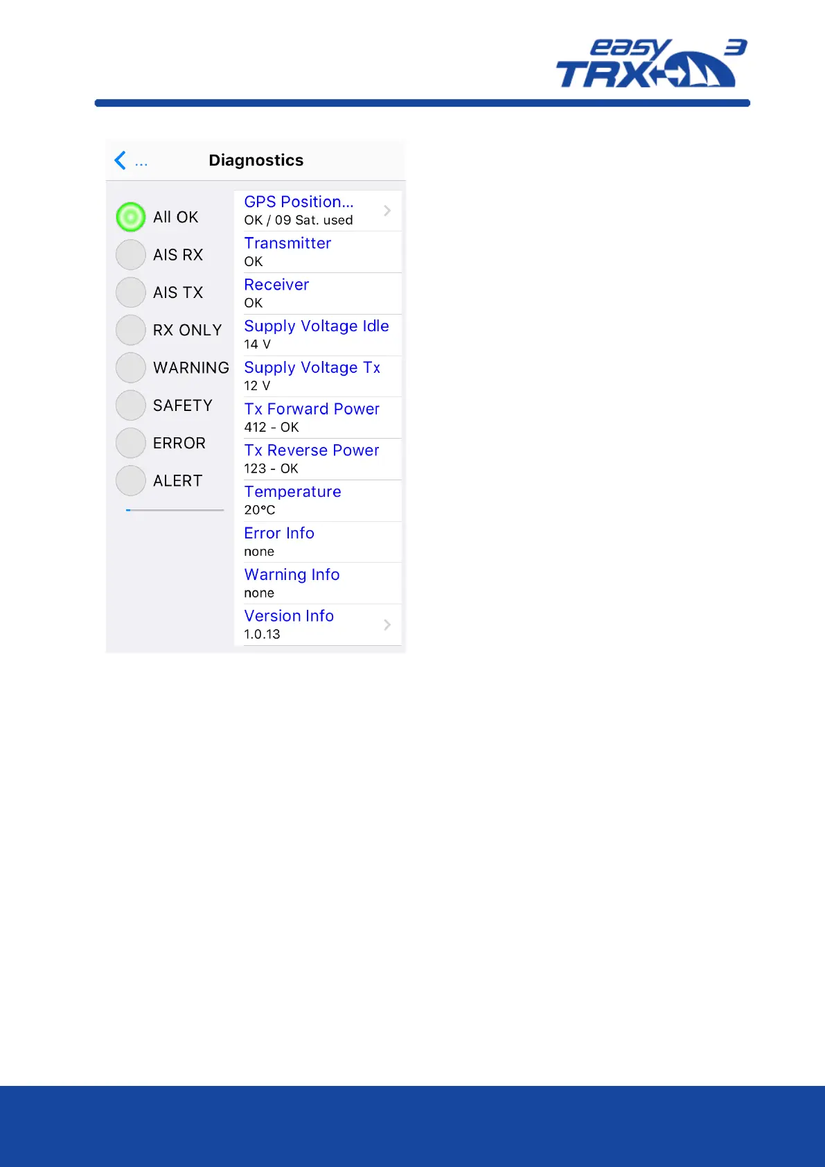status will be “Error” and the easyTRX3 is no