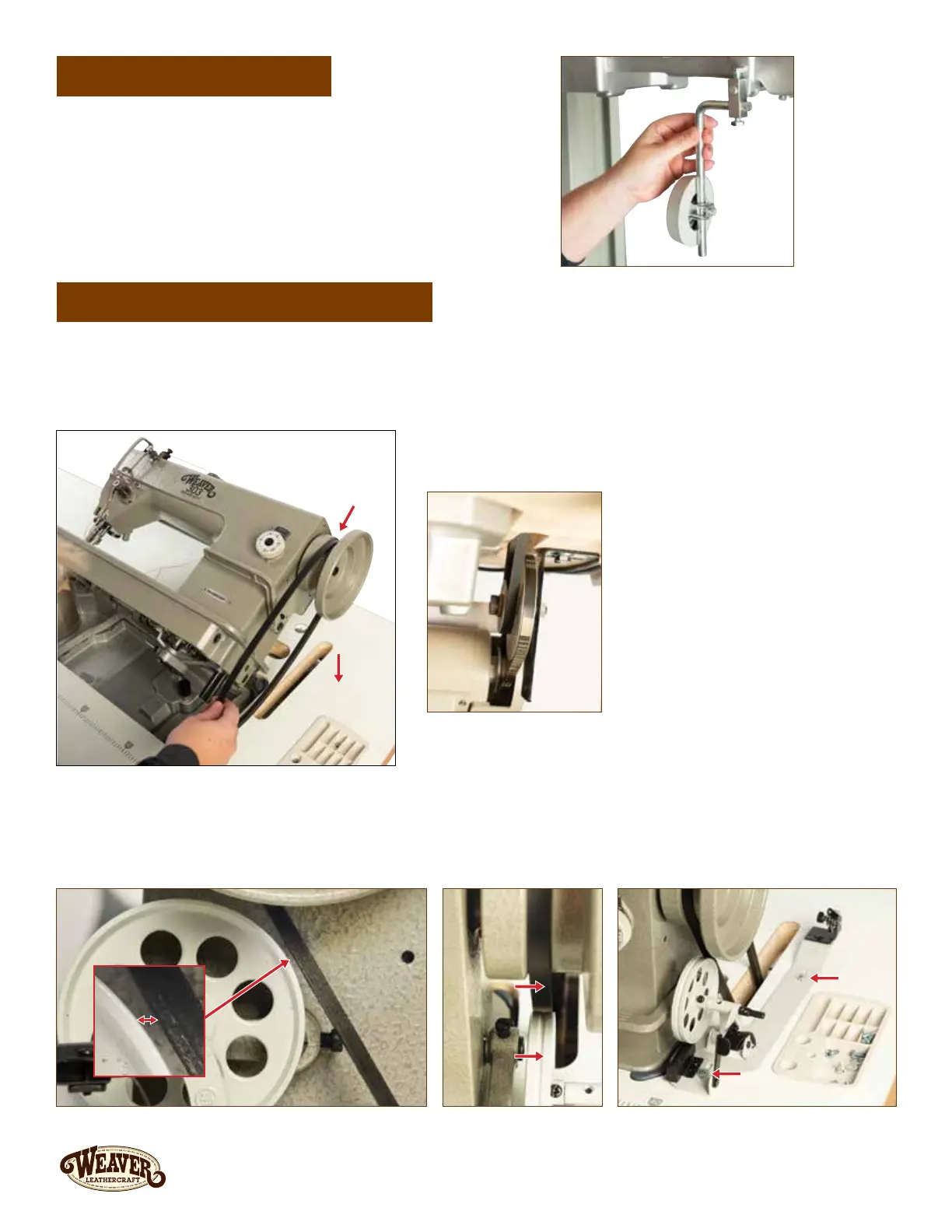 3. Install the bobbin winder. The Bobbin Winder Wheel and the belt should be in line with each other. Make sure