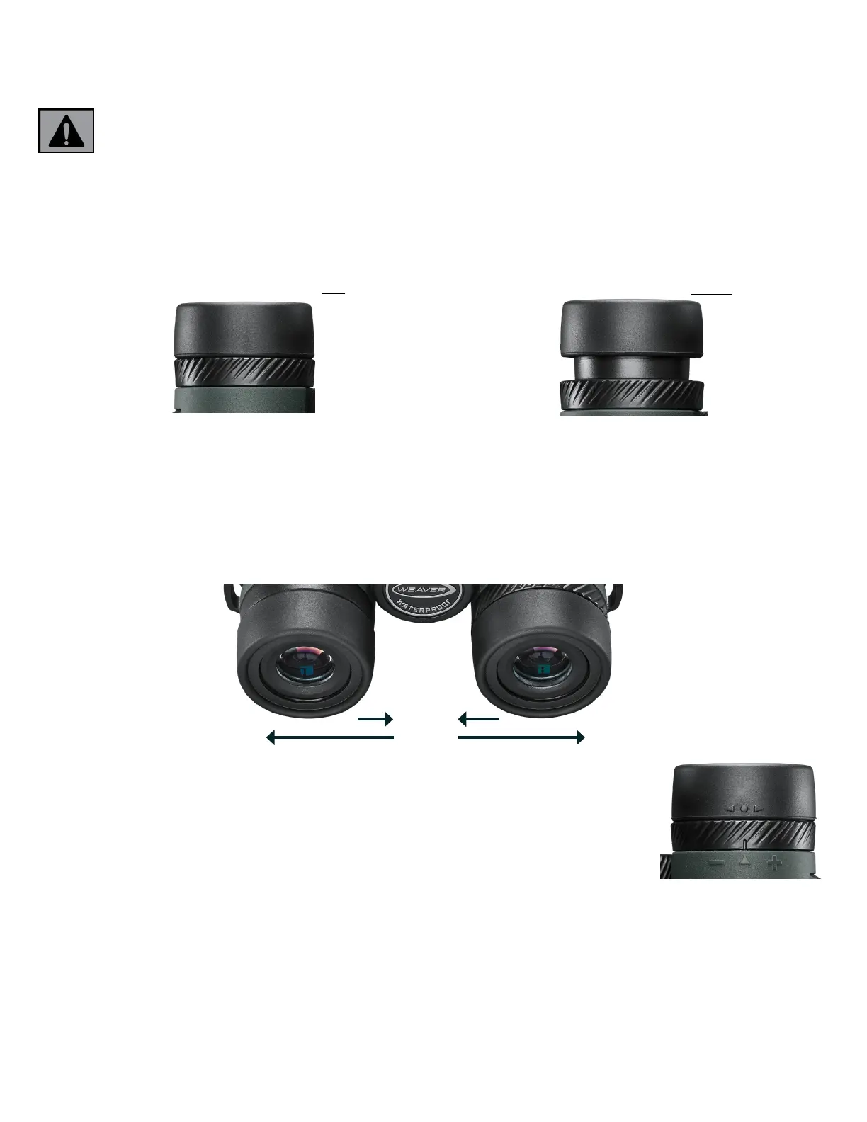 object into focus in the right side of the binocular. Avoid over-turning or forcing the diopter mechanism. If you are unable to
