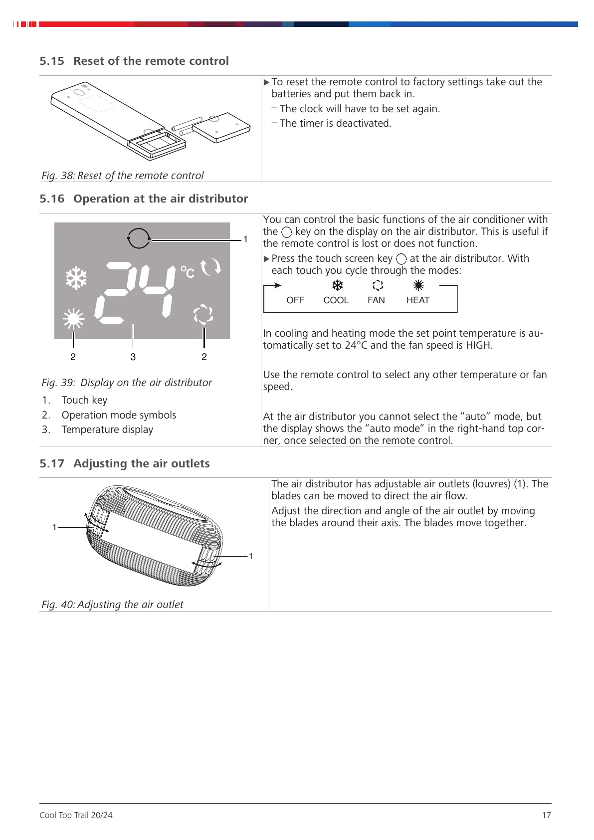 5.17 Adjusting the air outlets