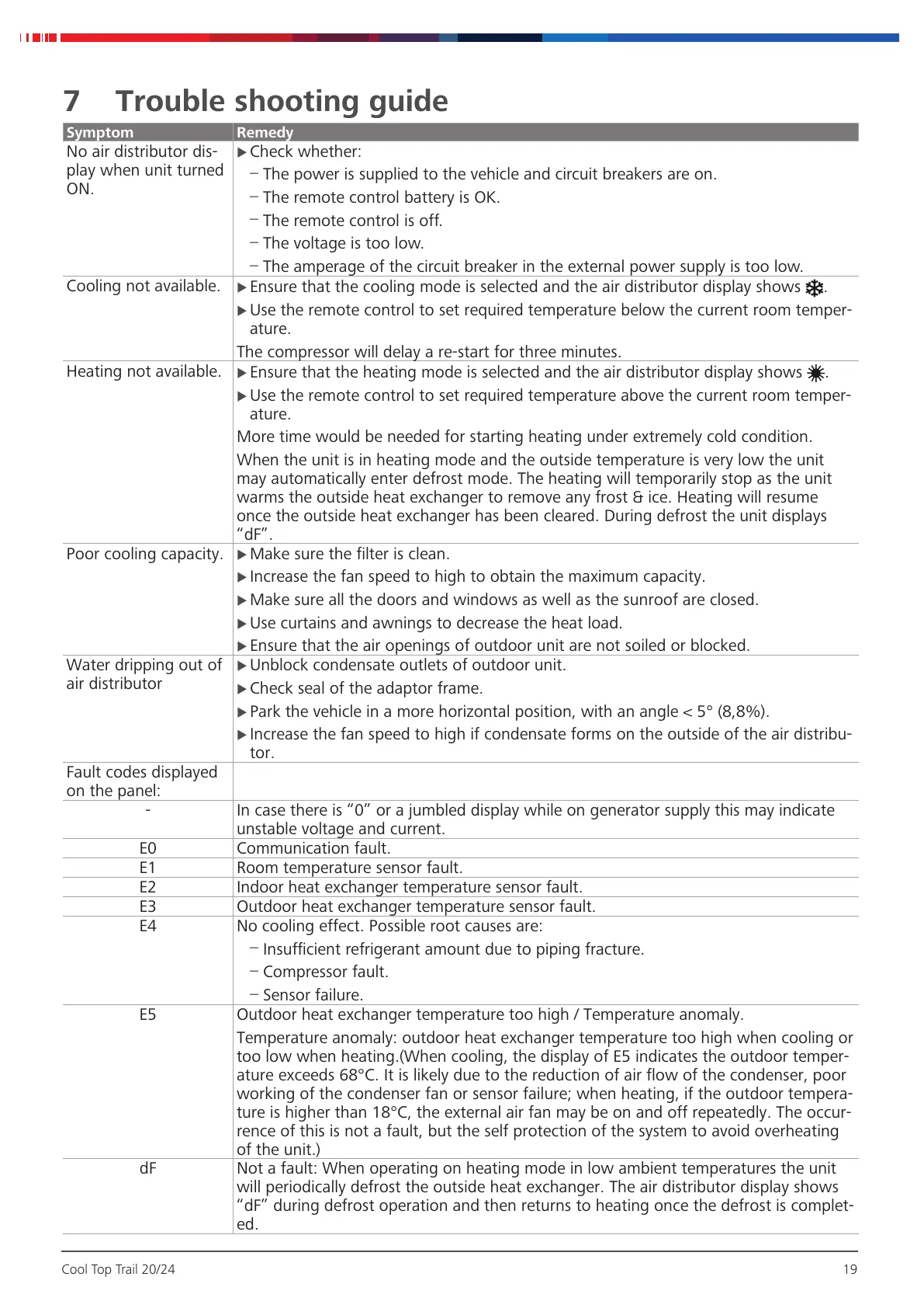 working of the condenser fan or sensor failure; when heating, if the outdoor tempera-