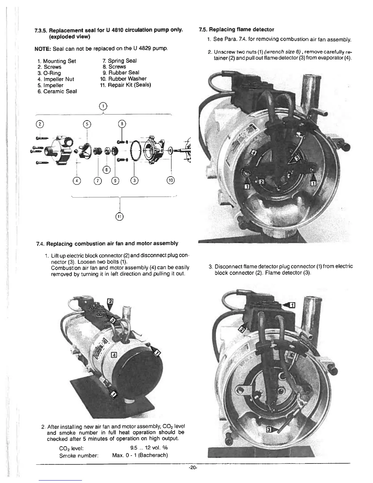 Webasto DW 80 - Replacement Seal for U 4810 Circulation Pump Only (Exploded View); Replacing Combustion Air Fan and Motor Assembly; Replacing Flame Detector