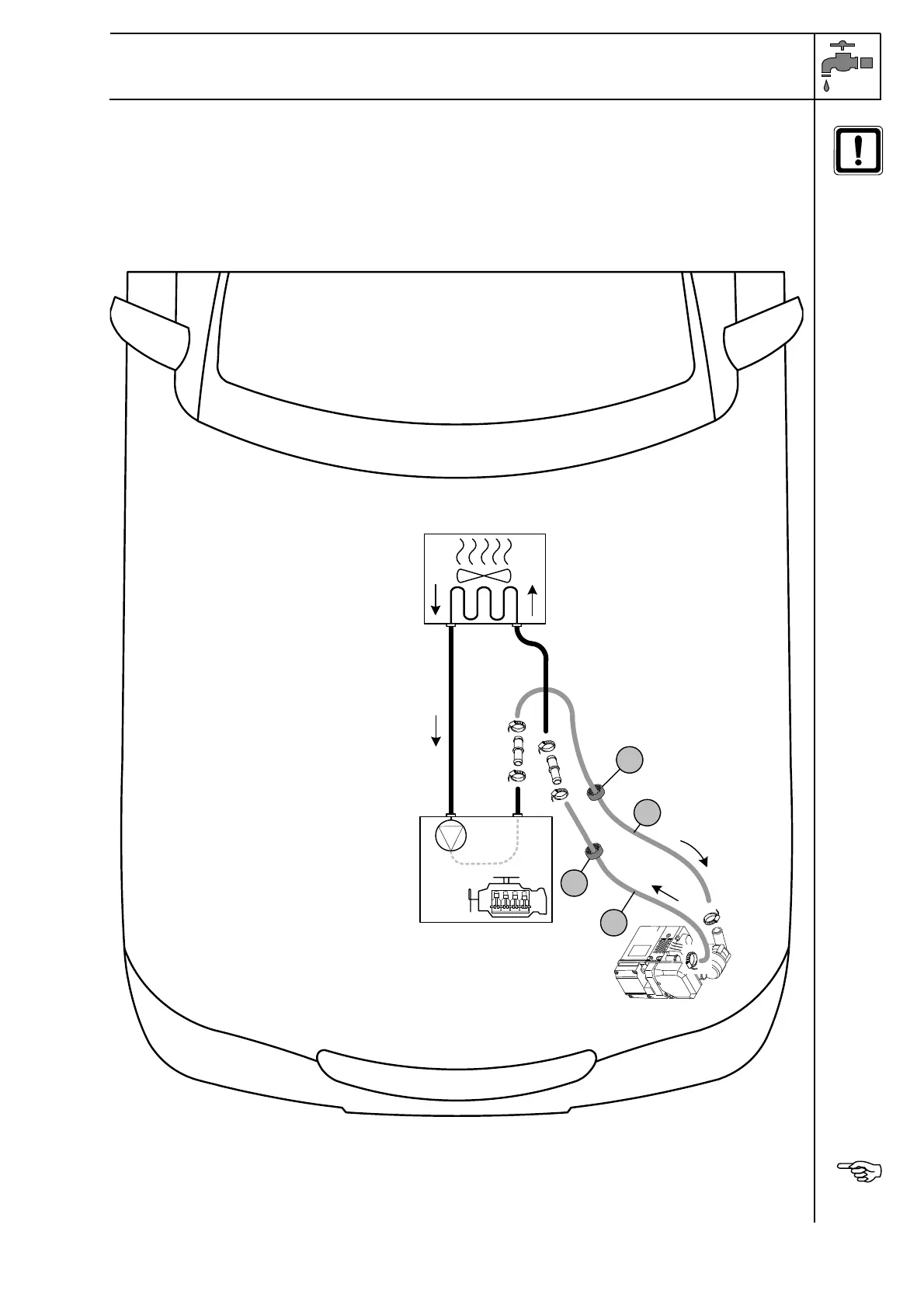 es cannot be damaged. The heater must be filled with coolant when installing the hoses.