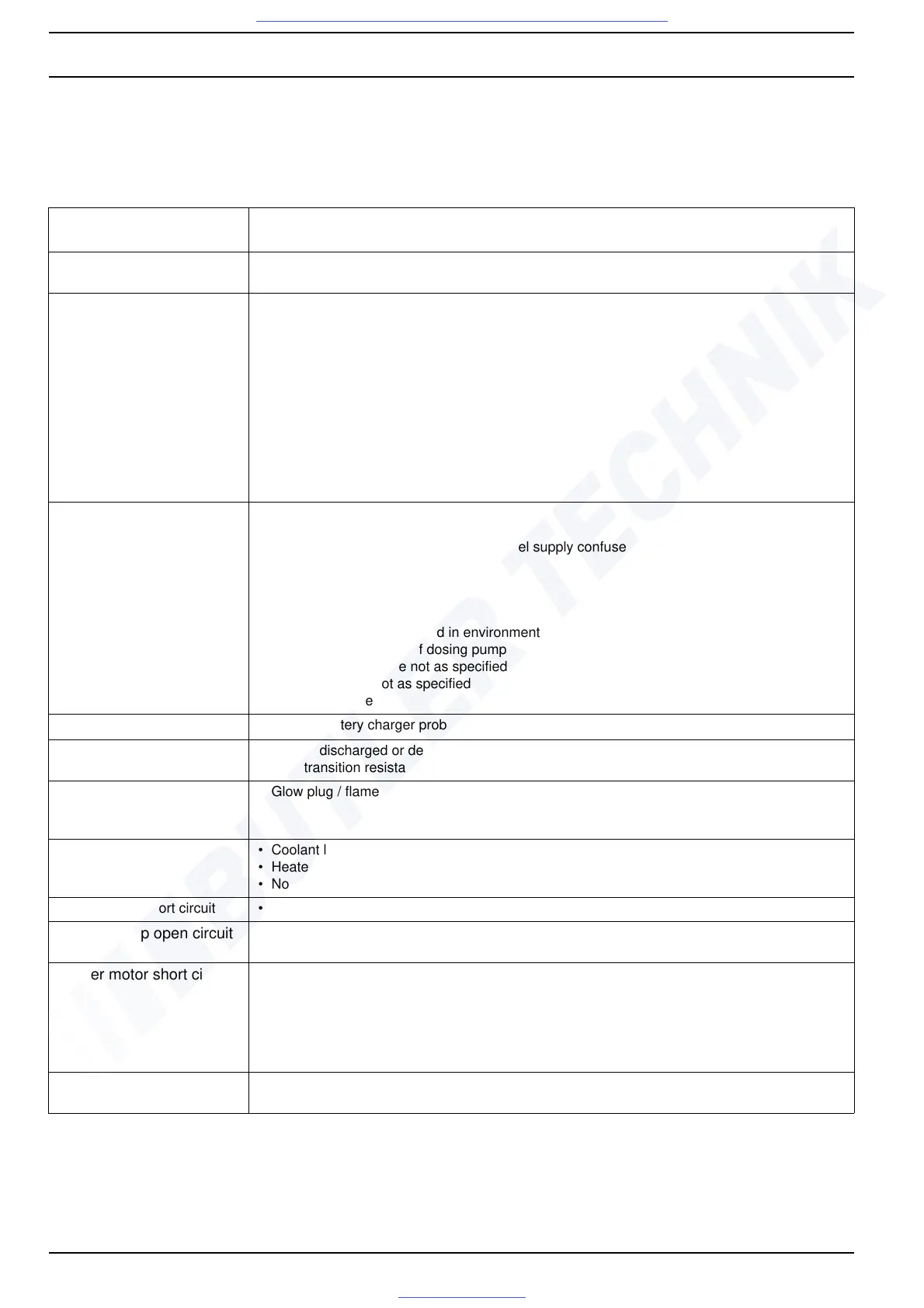 Dosing pump short circuit • Ground short in power supply line to dosing pump