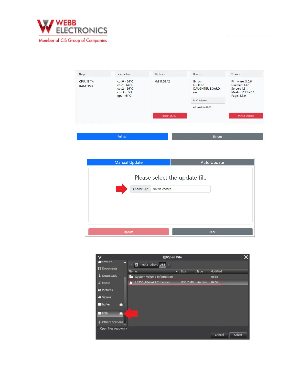 3. Go to the USB Flash Drive and select the update file (Note: The LS-350 update file extension must be