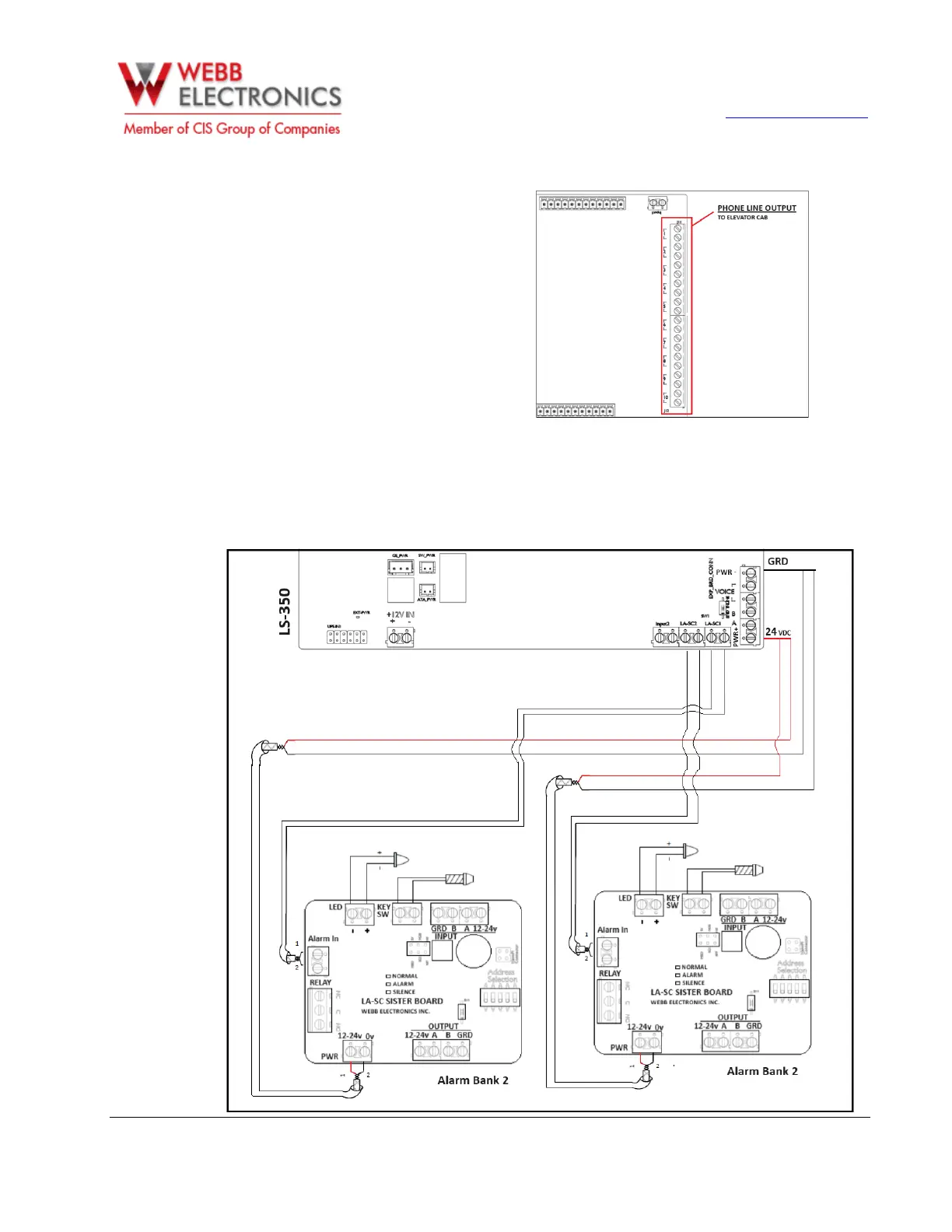 The LS-350 has two-line monitoring alarm outputs (dry contact – two banks). Please find typical wiring